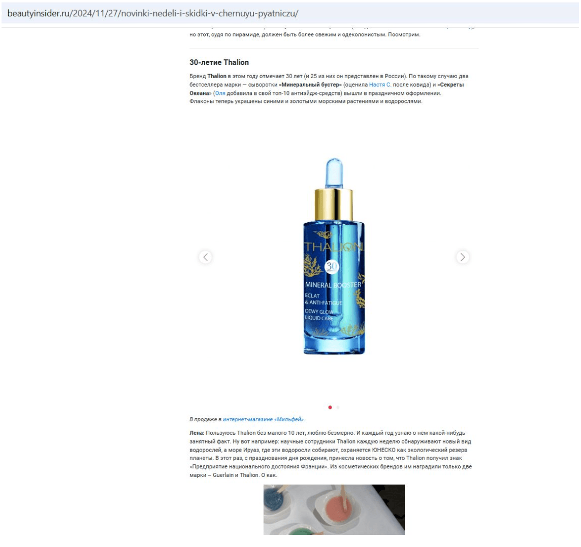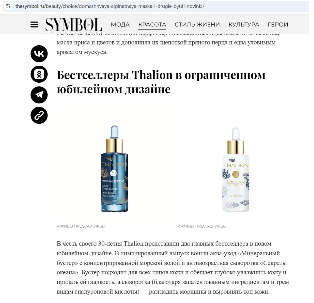 — получены публикации в СМИ: The Symbol, OK Magazine, IconLife, Beauty Insider, Woman.ru и других