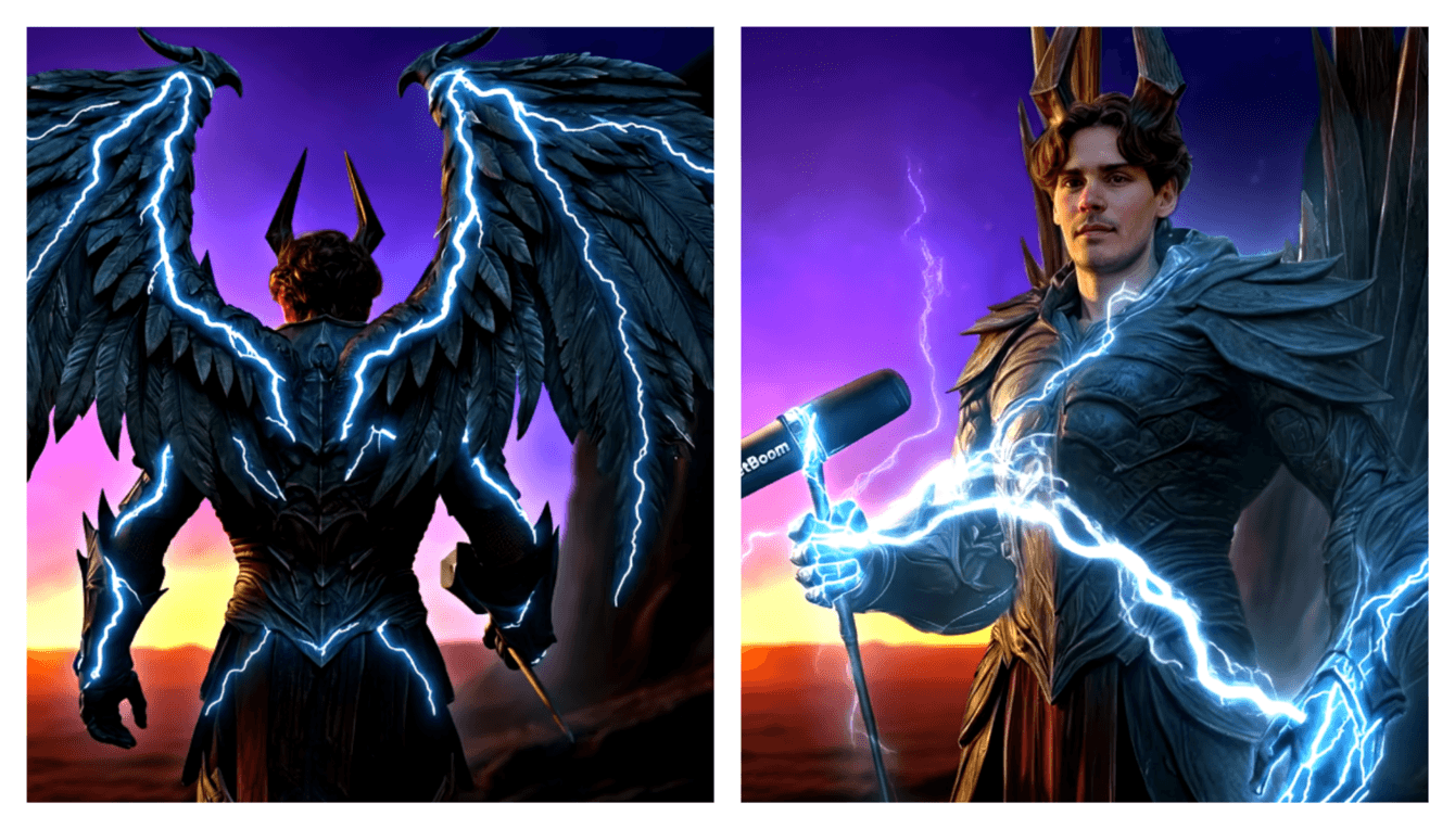 По брифу, персонажей должны были окружать молнии. Изначально мы планировали добавлять их на постпродакшене, но Влад решил протестировать генерацию эффектов прямо в нейросети — и это сработало. Около 80-90% всех молний в роликах были созданы AI, что сэкономило нам массу времени. На постпродакшене мы лишь точечно добавляли эффекты там, где это было критично, например, в глазах героев или рядом с логотипом, чтобы избежать искажений.