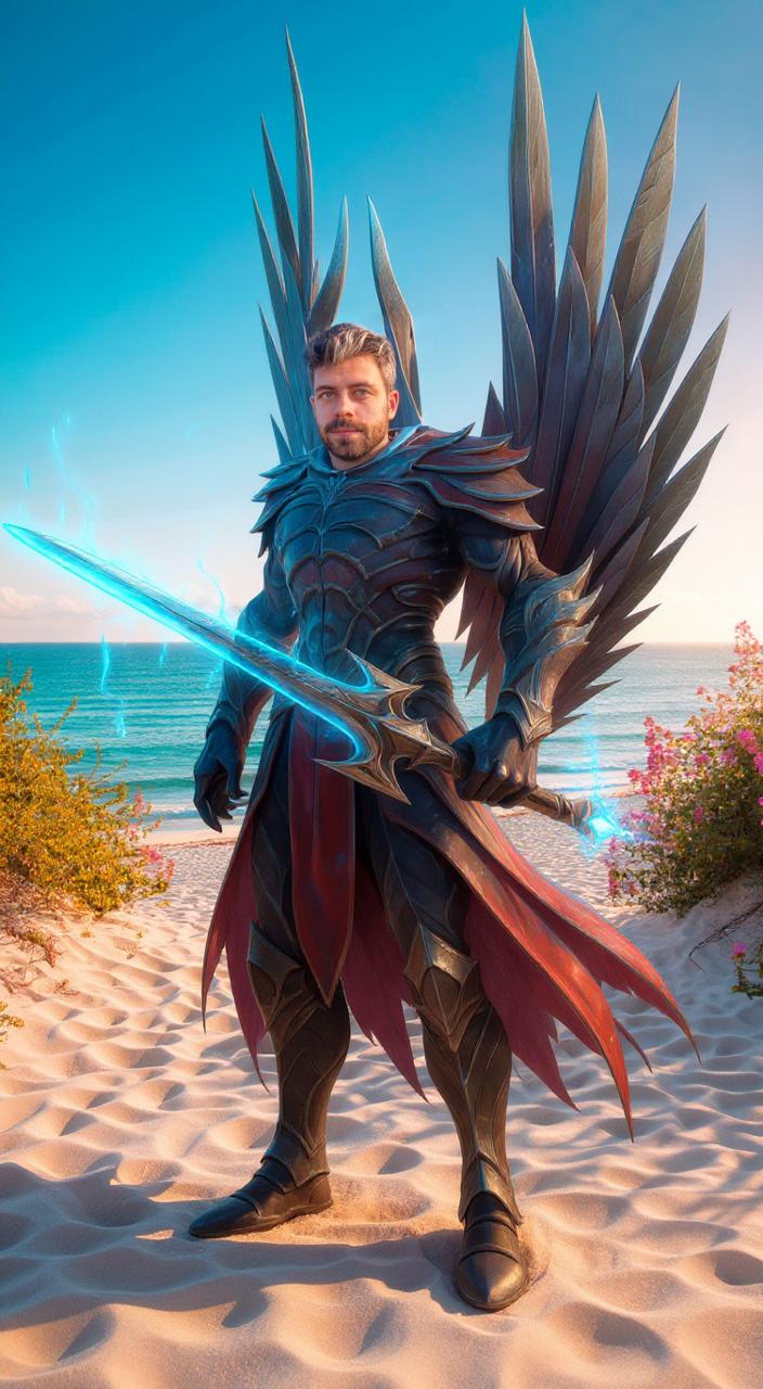 Пока ждали фотографии от блогеров, нужно было протестировать технологию. Терять время не хотелось, поэтому на первые пробы наш ИИ-художник Влад вставлял в брутальные доспехи свое лицо. Получилось забавно, а главное — мы увидели, что технология работает.