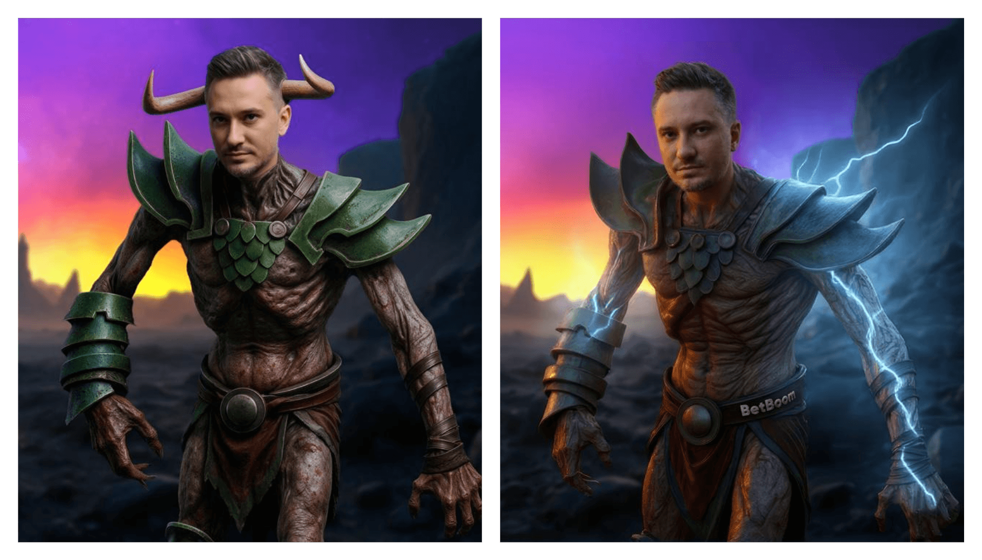 Самой волнительной и непредсказуемой частью было интегрировать в получившиеся образы лица реальных амбассадоров BetBoom. Раньше для такой задачи нужно было обучать отдельную модель LoRA на каждого человека. Это долгий и мучительный процесс, требующий 30+ фотографий с разных ракурсов.