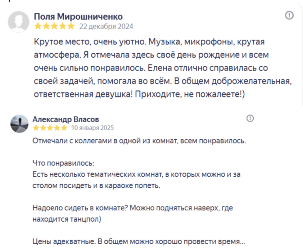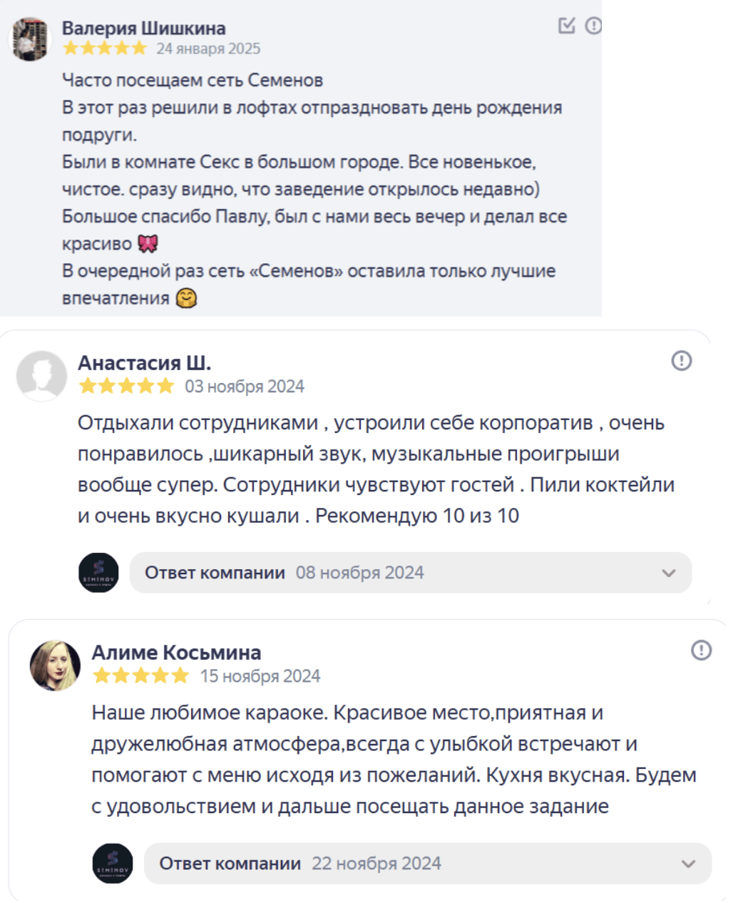 Такие инициативы не только повышают лояльность гостей, но и укрепляют позиции в рейтингах Яндекс.Карт. Это, в свою очередь, привлекает новых посетителей, усиливает онлайн-видимость компании и создает положительный имидж бренда.