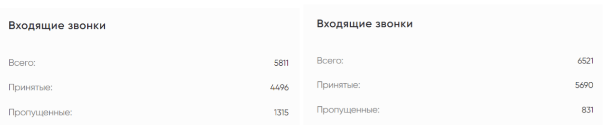 В связи со значительным увеличением заявок возросло и количество звонков, обрабатываемых менеджерами. Количество принятых звонков возросло более чем на 1000 в месяц, уменьшился процент пропущенных звонков, но он все еще достаточно высокий. В связи с этим мы постоянно работаем над улучшением работы ОП.