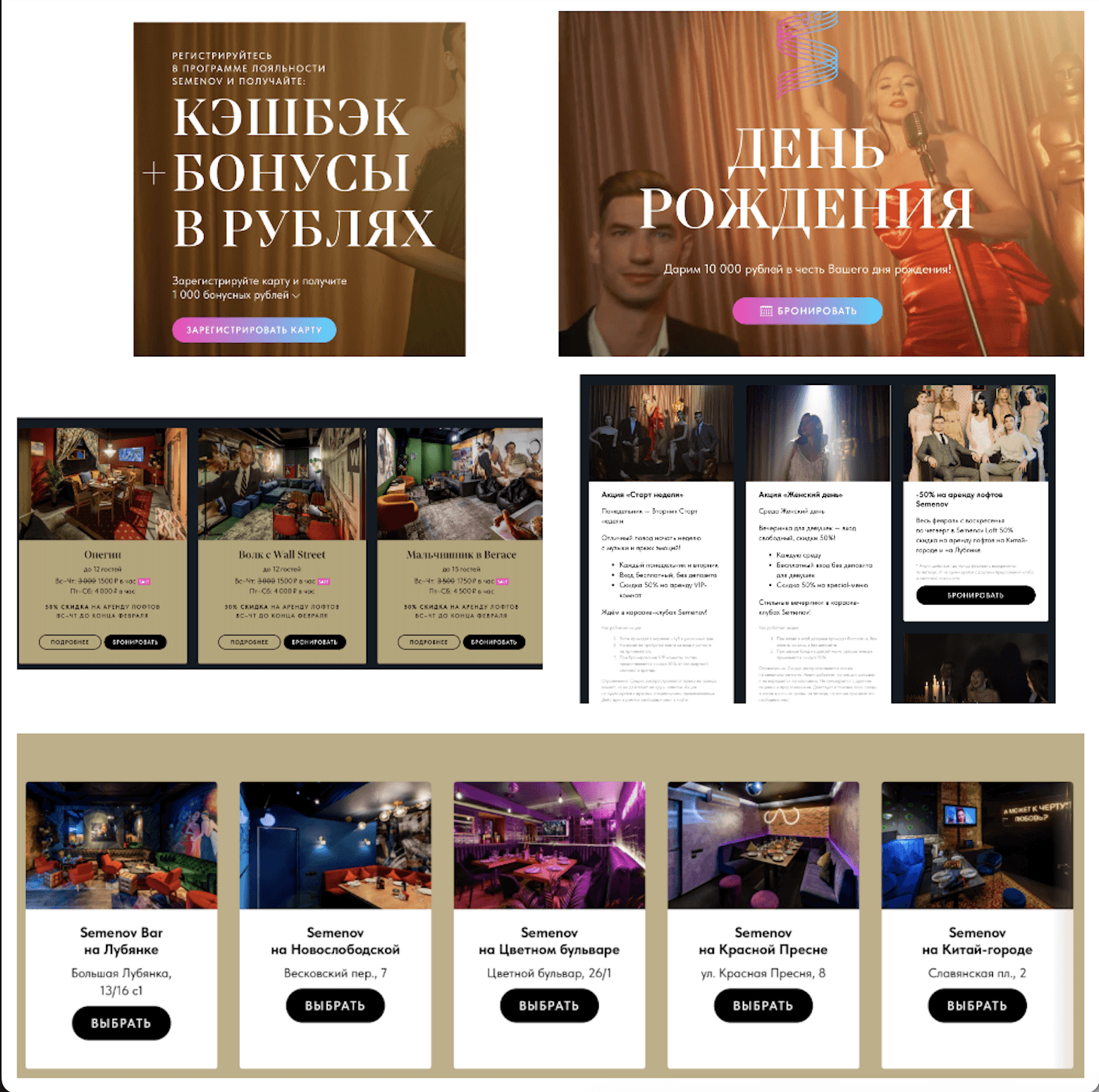 Мы разработали отдельные страницы, посвященные организации дней рождений и тематических вечеринок в наших лофтах. Это позволяет клиентам легче находить нужную информацию и оформлять заказы.