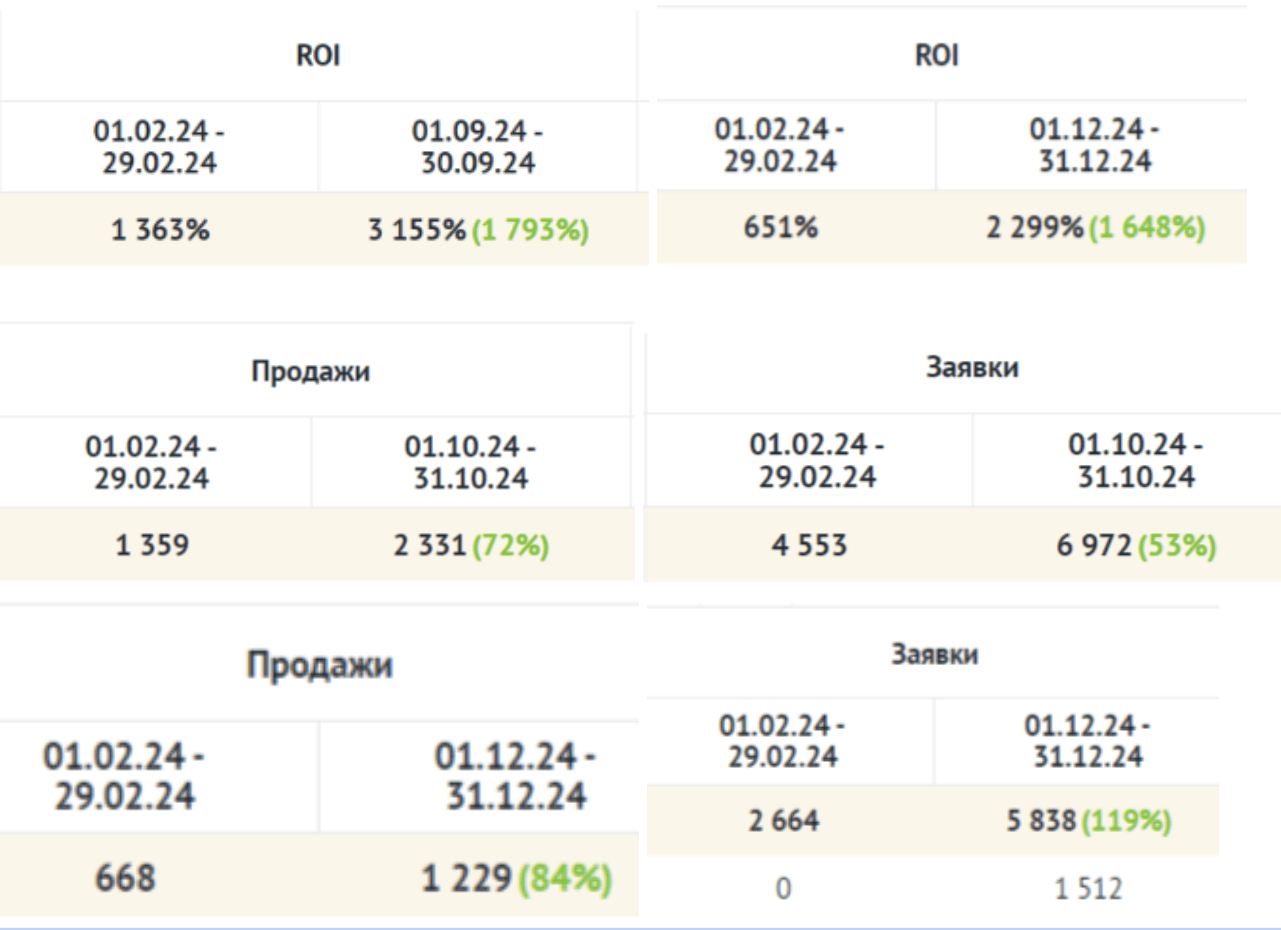 Результаты работы - комплексная оптимизация бизнес-процессов, улучшение конверсий и рост доходности компании: