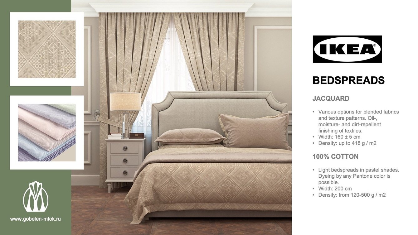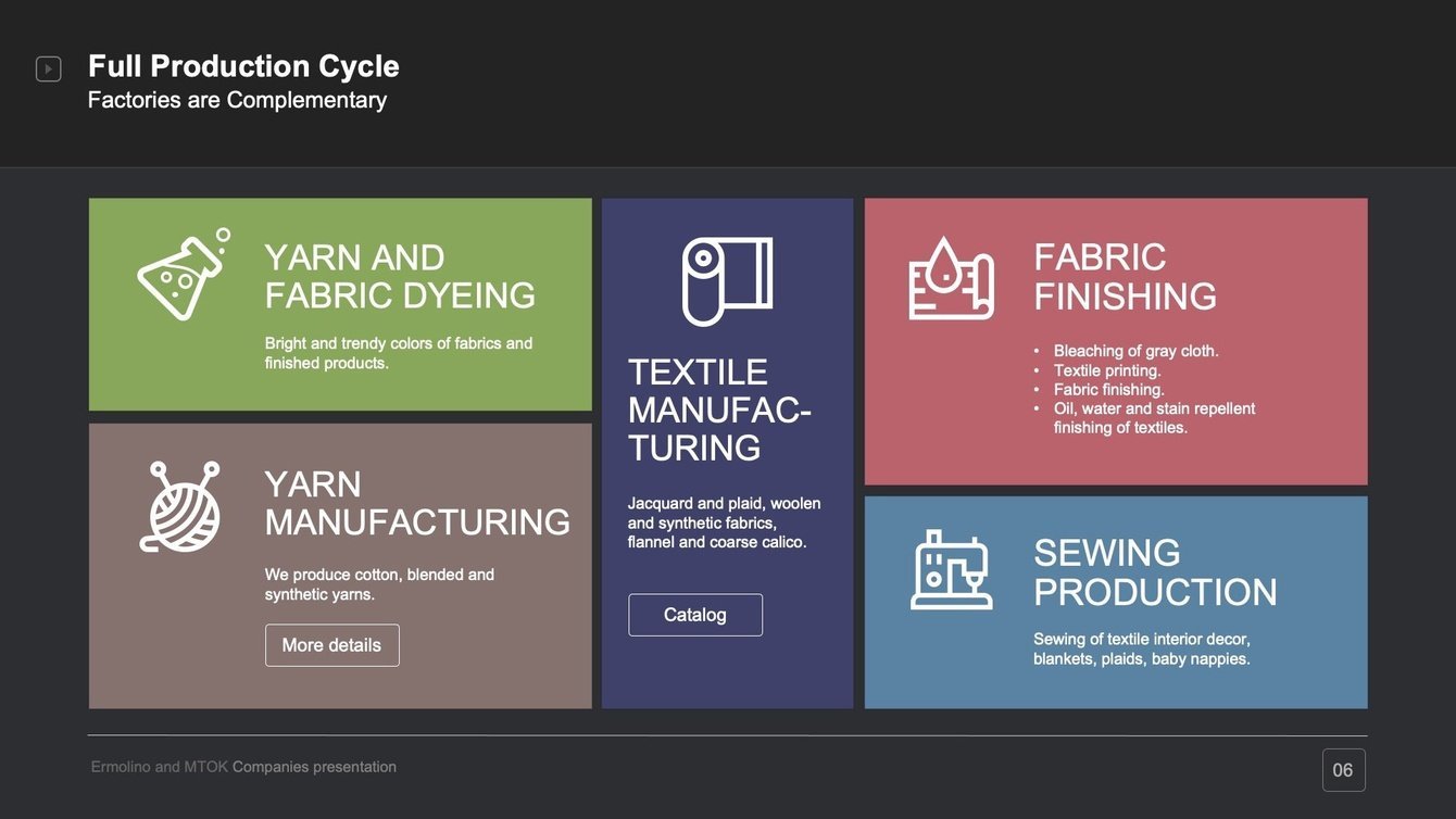 Московский ткацко-отделочный комбинат «МТОК» и текстильный комбинат «Ермолино» заказали нам Презентацию в PowerPoint на английском языке для представления своей продукции европейским партнерам.