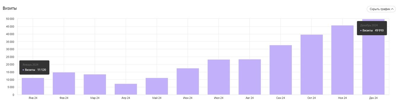 Только за 2024 год удалось нарастить посещаемость сайта в 4,5 раза!