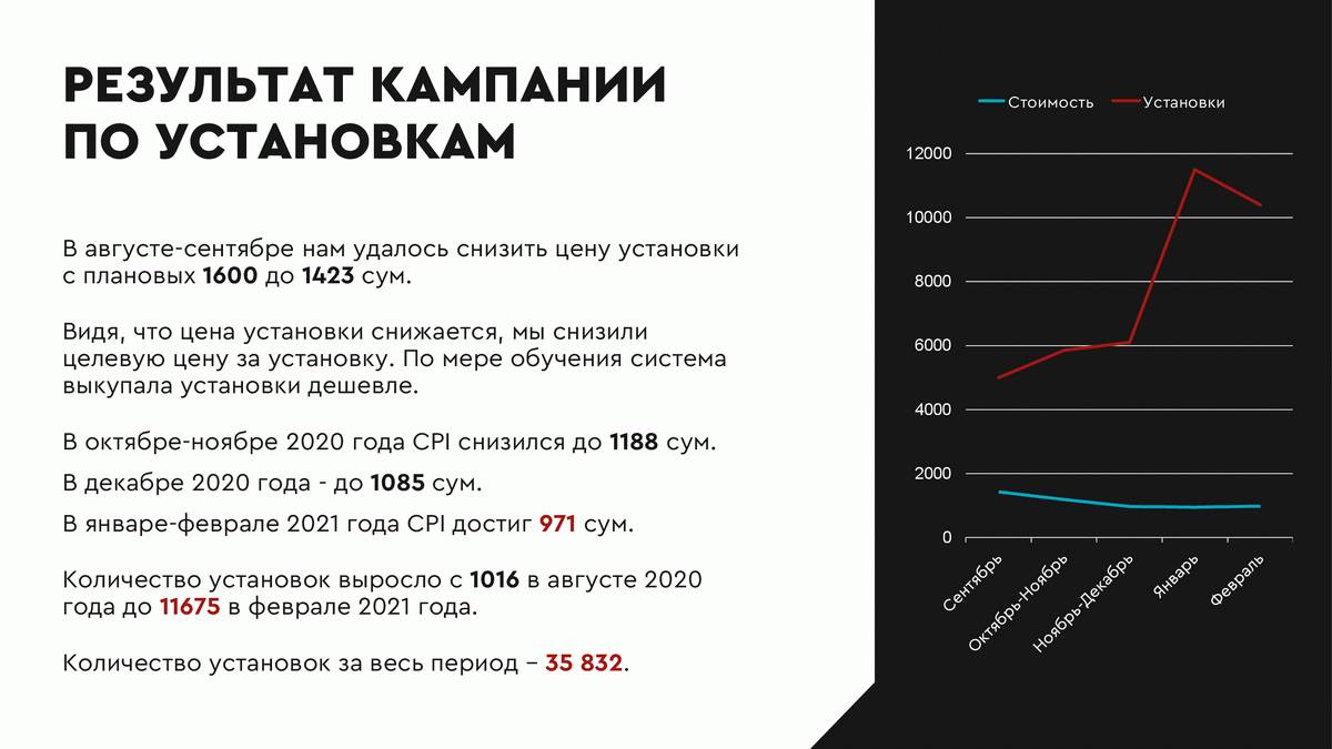 Именно использование мобильной аналитики и импорт конверсий из нее в рекламный кабинет позволили нам оптимизировать кампании таким образом, чтобы улучшить итоговые показатели.