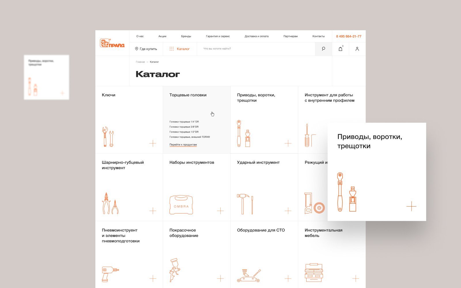 В элементах интерфейса можно найти похожие образы ключей, гаек и болтов. Все это увеличивает релевантность сайта к продукту и фирменному стилю, нативно знакомя человека с компанией.