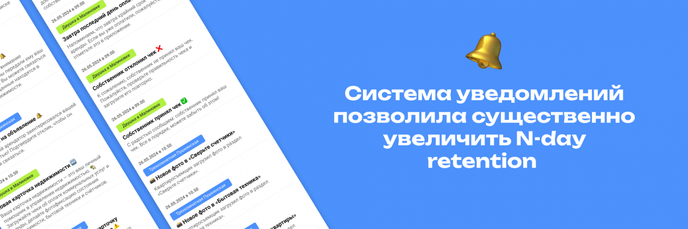 - Система уведомлений. Приложение отправляет пользователям напоминания о предстоящих платежах за аренду и коммунальные услуги, чтобы избежать просрочек. Также реализованы in-app уведомления.