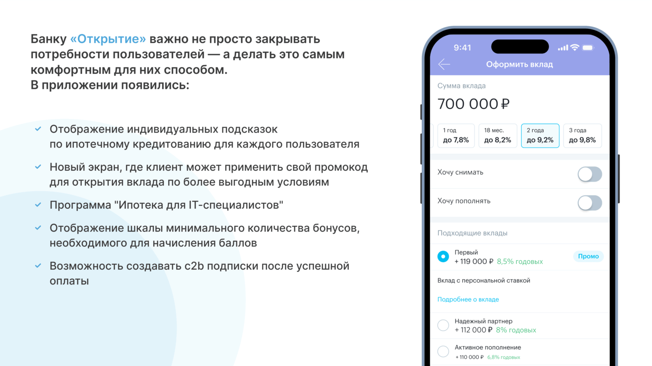 - добавили новый экран, где клиент может применить свой промокод для открытия вклада по более выгодным условиям