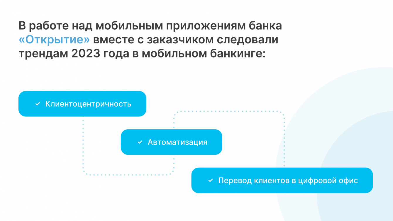 Приложение банка “Открытие” — результат синхронной работы команды заказчика и команды разработчиков KODE. В работе мы следовали основным трендам в мобильном банкинге 2023 года.