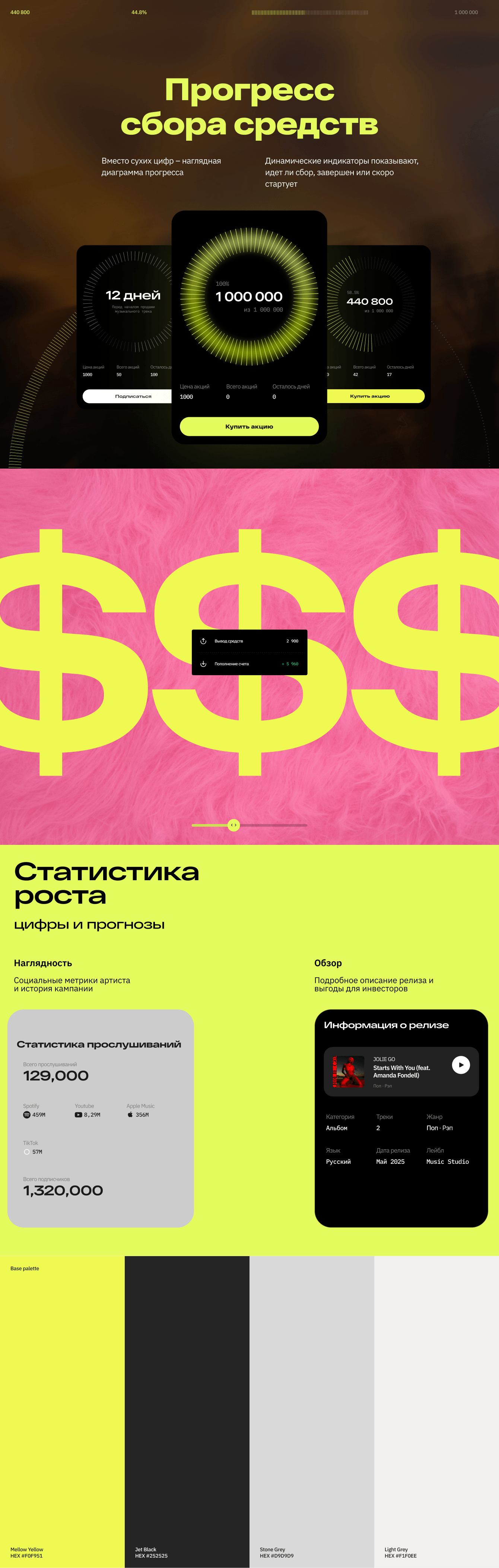 • Дать возможность пользователям инвестировать в музыку и получать доход от будущих хитов.