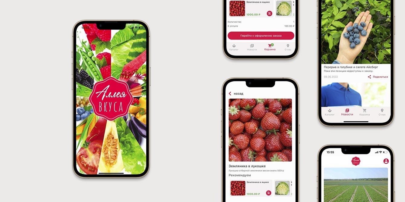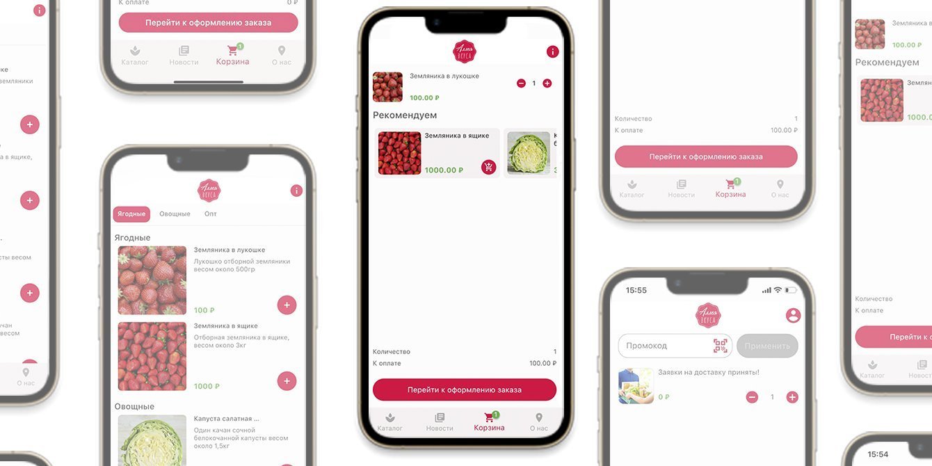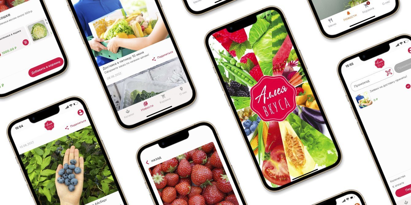Готовое приложение для фермерского магазина продуктов. Работа с конструктором не требует специальных знаний, заказчик наполнял приложение самостоятельно.