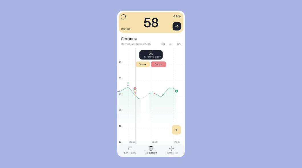 Для связи с устройством AnnIGM мы использовали Bluetooth API и реализовали интерфейс, отображающий данные о глюкозе в удобной графической формате.