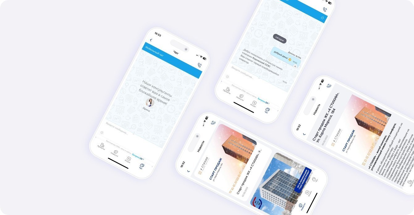 Создание функционального приложения для покупателей квартир, интегрированного с CRM-системой, упростило процесс поиска и выбора жилья. В нем объединены все необходимые данные, потенциальные покупатели легко находят информацию об объектах, формируют список «избранных» и записываются на просмотры, а также задают любые вопросы через чат с менеджером.