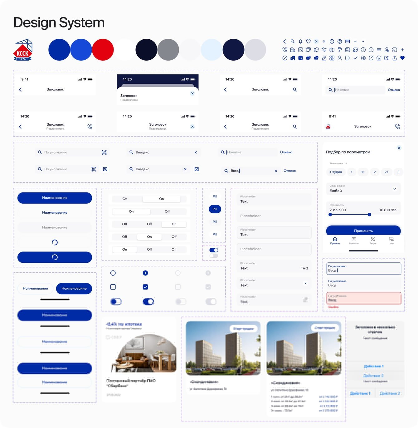 В 2022 году мы провели масштабный рестайлинг всего представительства строительного концерна в интернете и разработали дизайн-систему, которая используется на всех ресурсах. На сайте и в приложении пользователь увидит единые визуальные элементы.