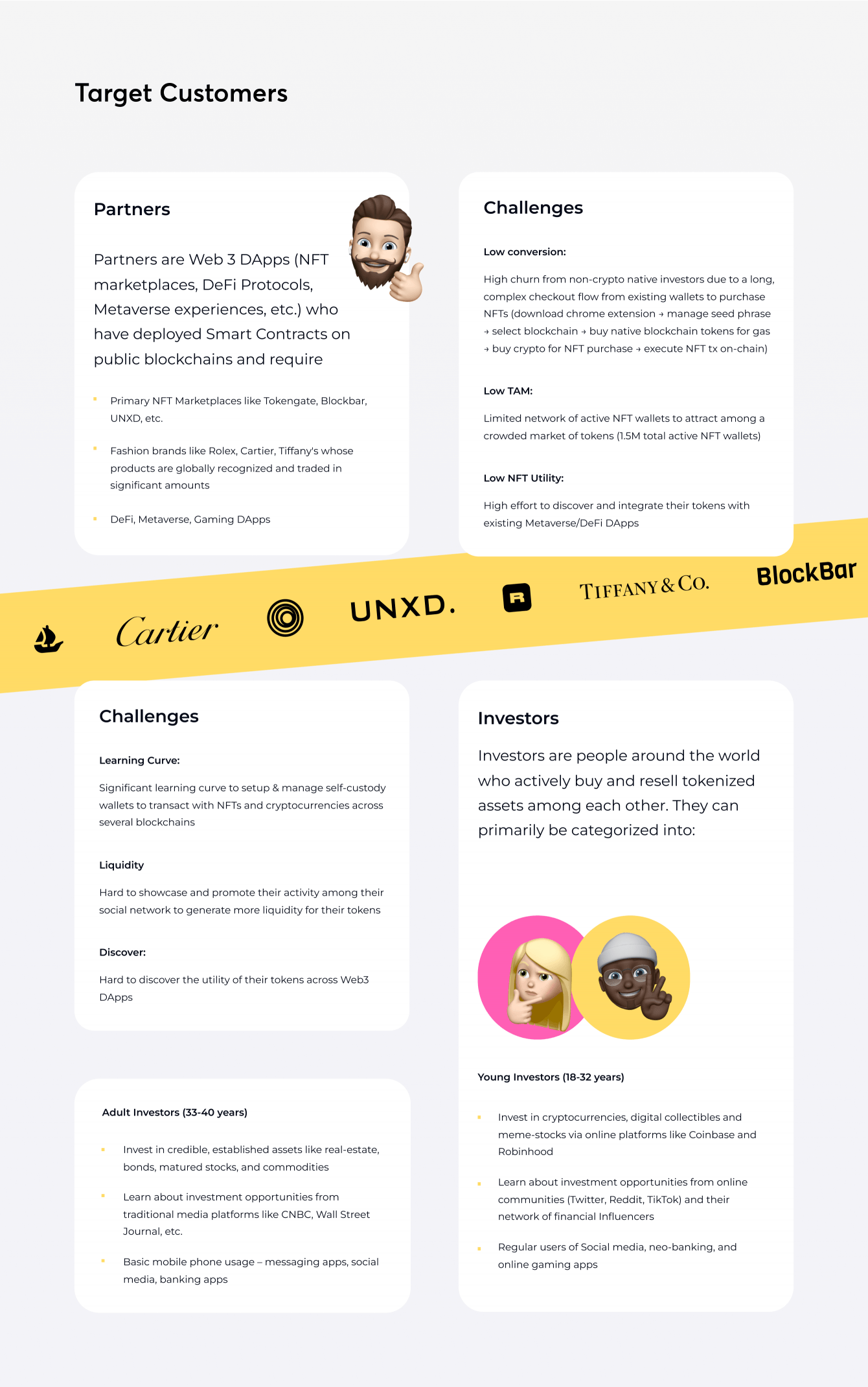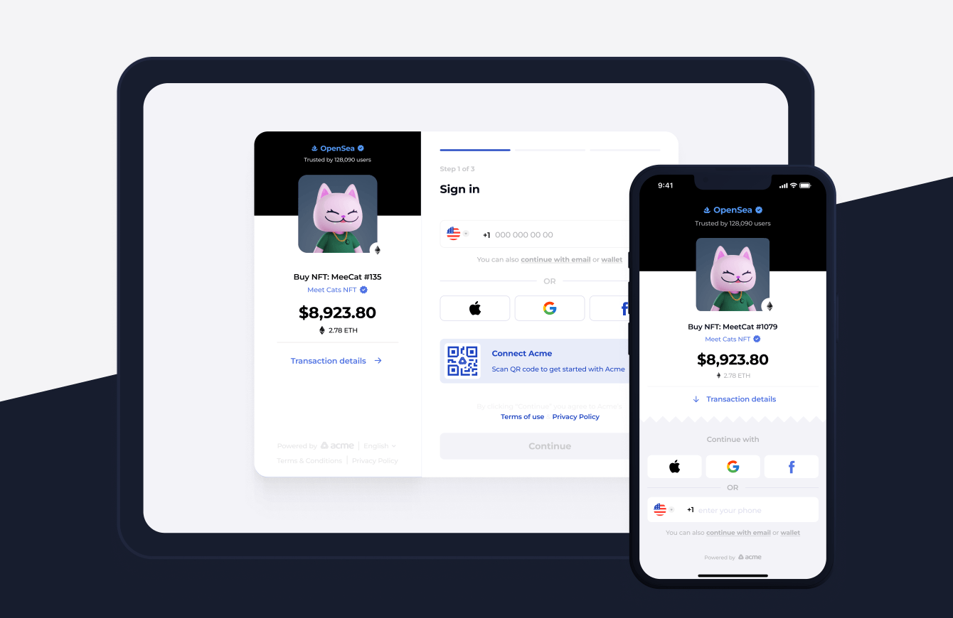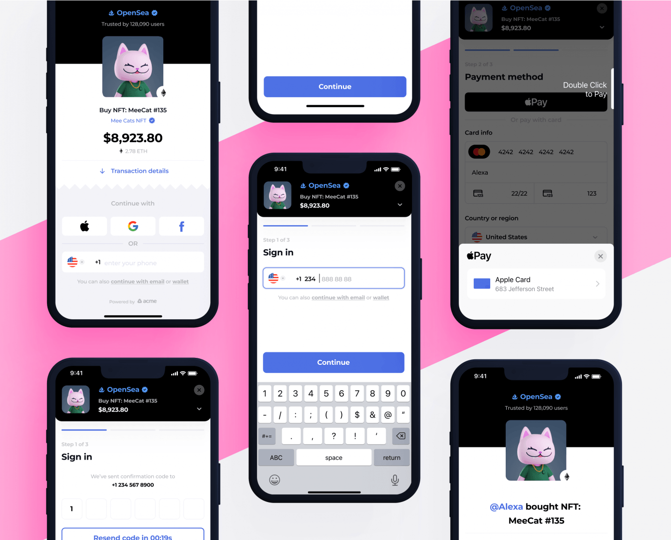 — Разработаны дизайны всех основных и дополнительных экранов приложения. Пользователи могут, выбирать разные типы входа — по номеру телефона или по адресу электронной почты, в один клик совершать NFT-операции, легко оплачивать покупки с помощью Apple или Google Pay или банковской карты