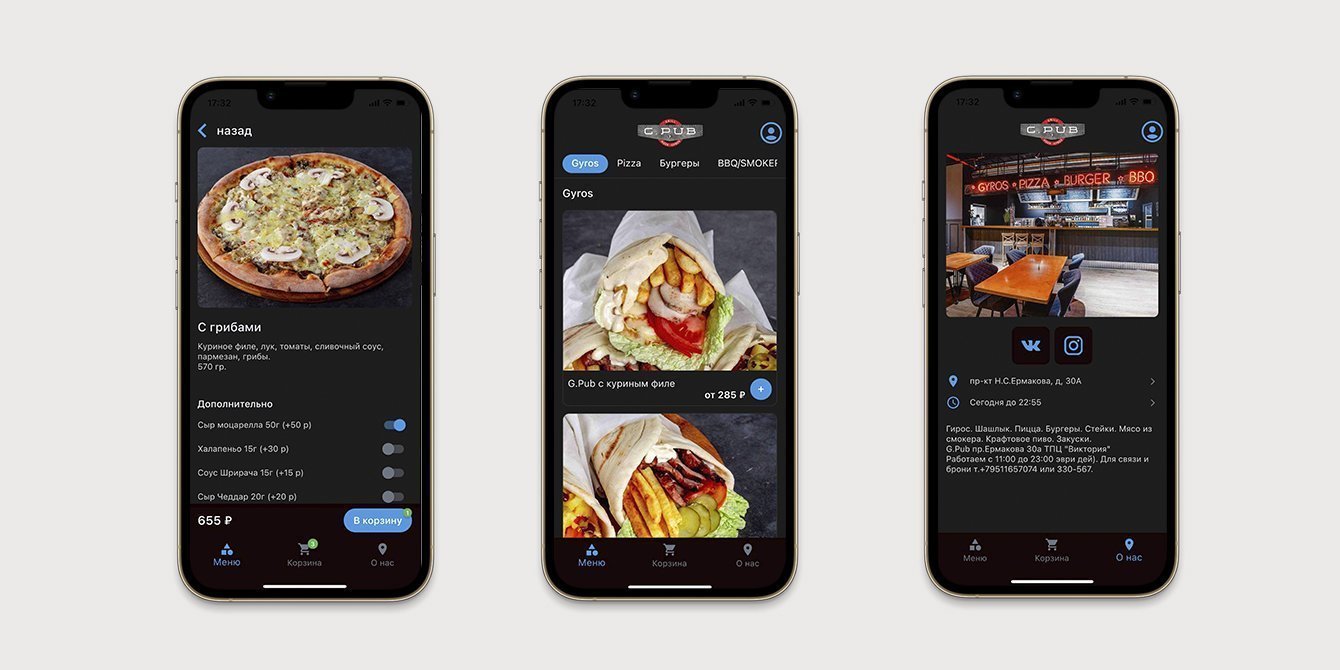 Все варианты оформления приложения обсуждались с владельцем заведения G.Pub