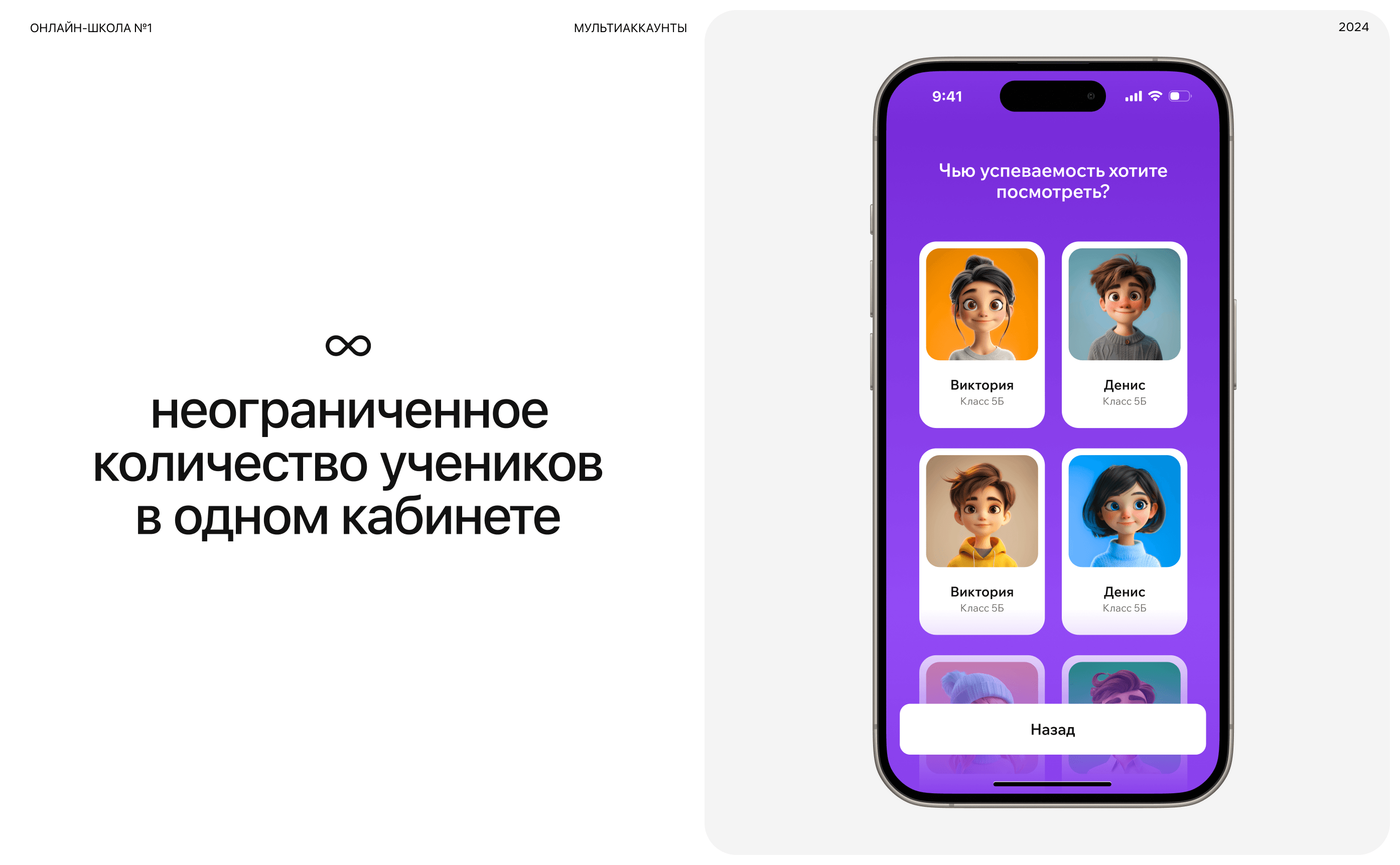 реализовать работу с несколькими детьми в одном семейном аккаунте и возможность переключения между их профилями;