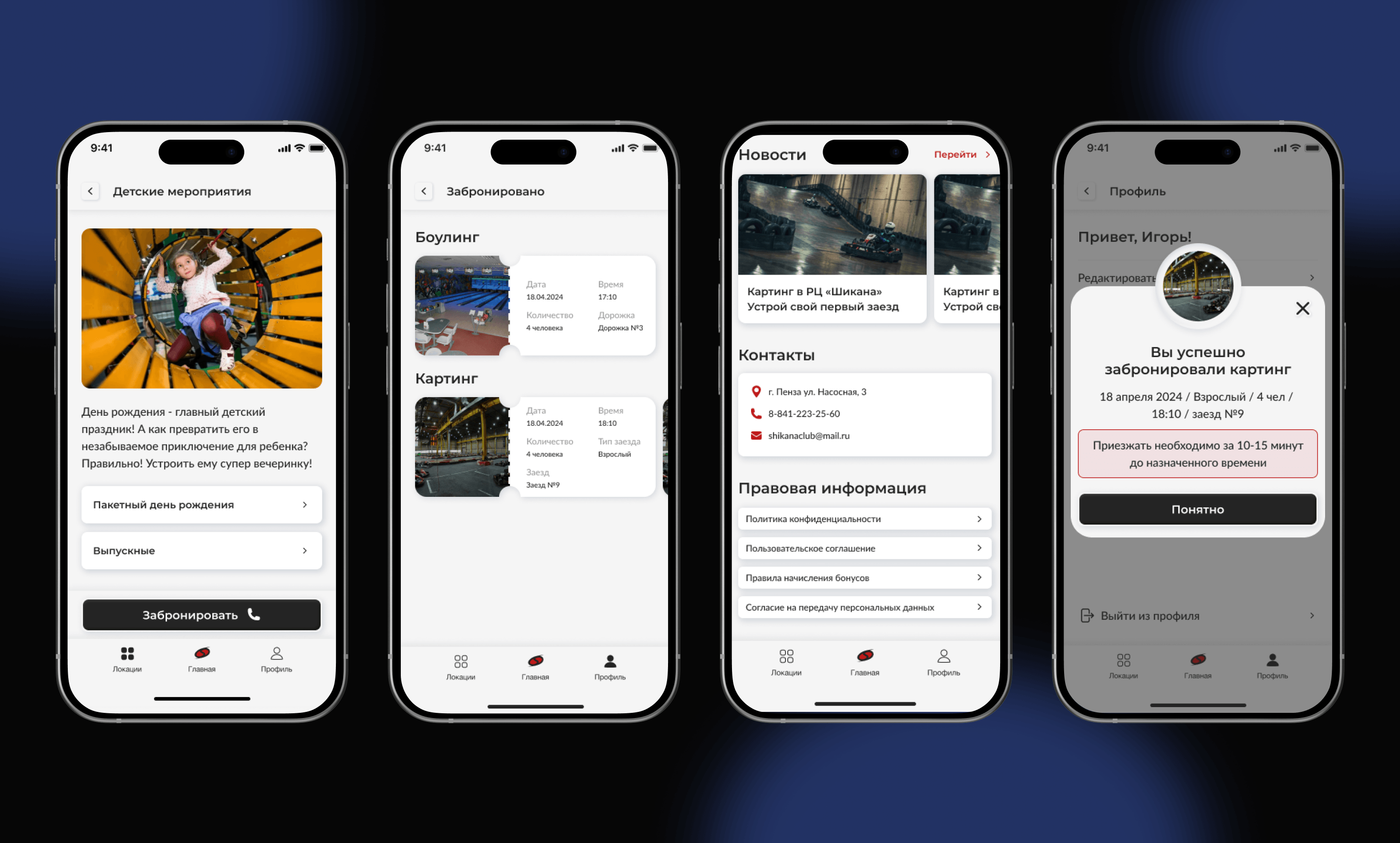 Мы реализовали удобное мобильное приложение для семейного развлекательного центра «Шикана», которое позволило: