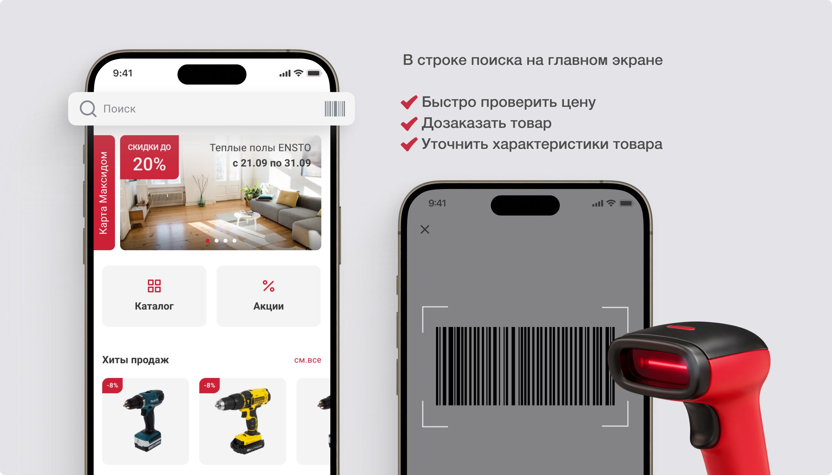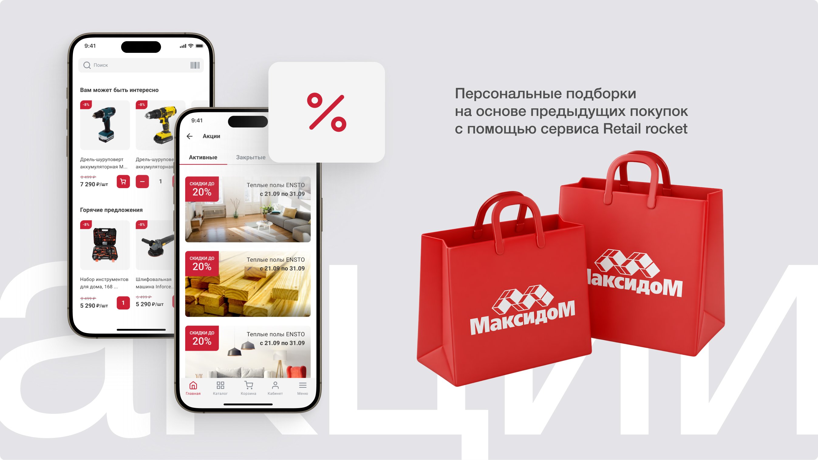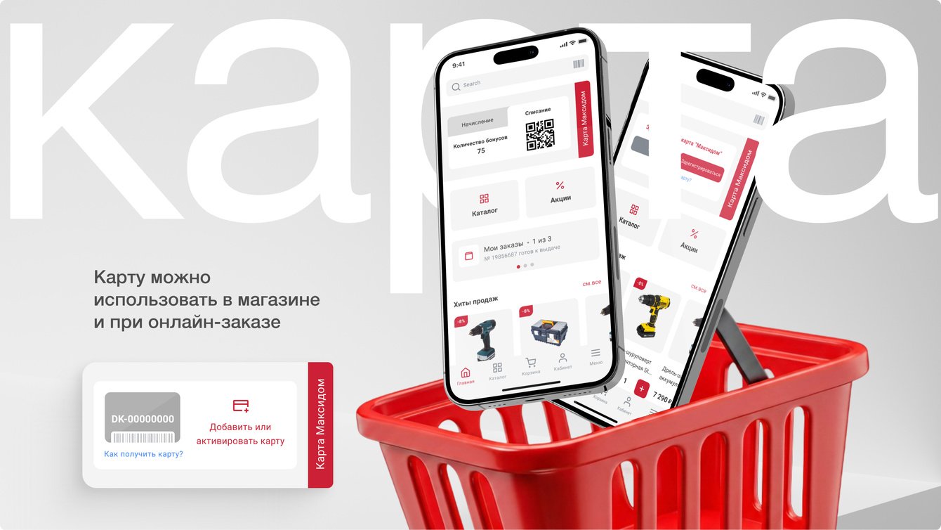 Интегрировали приложение с программой лояльности «Максидома». Разместили карту лояльности на главном экране.