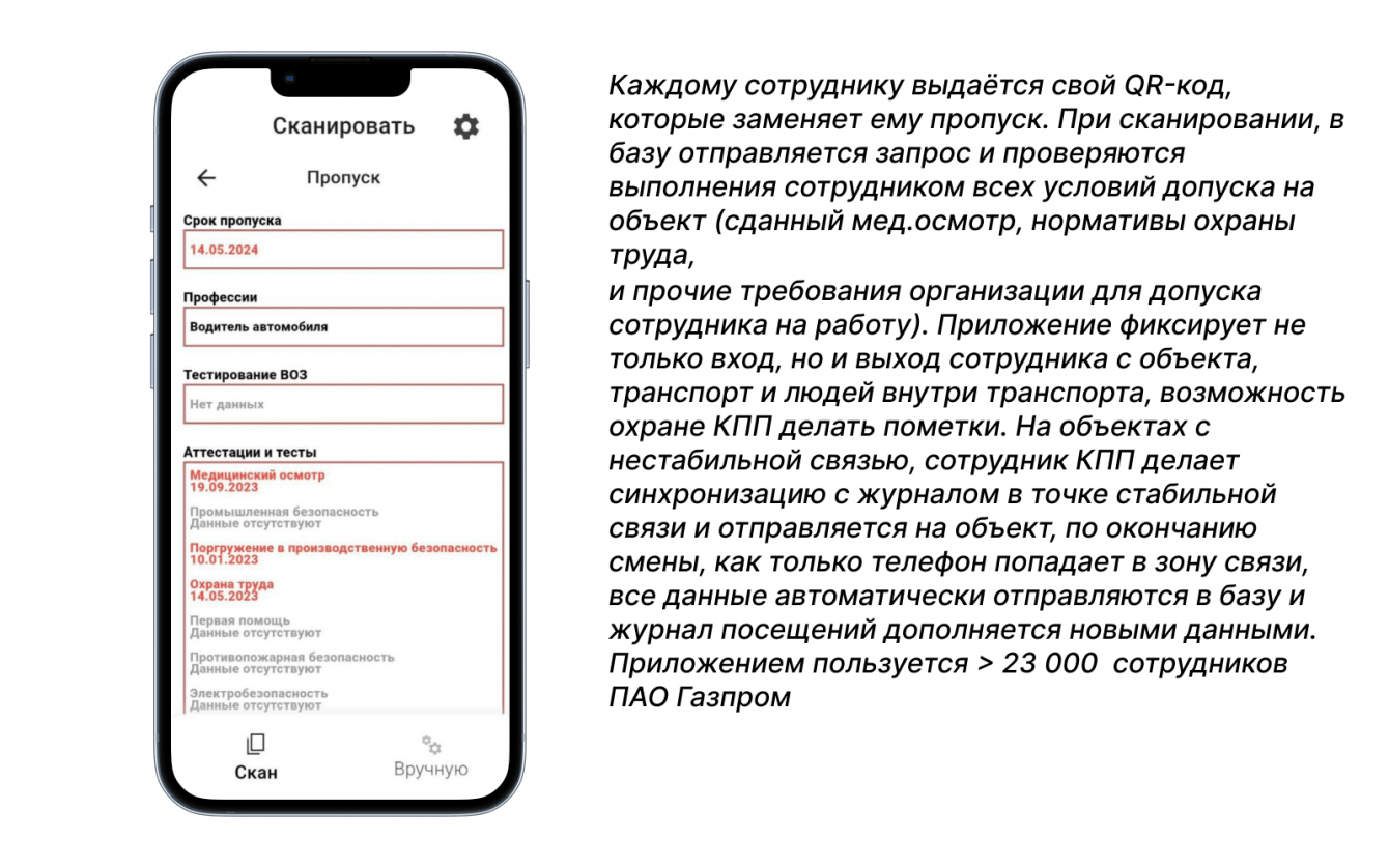 Приложение значительно упростило работу охранников и управления на объектах, обеспечив более высокую эффективность процессов и улучшив контроль за соблюдением всех норм безопасности.