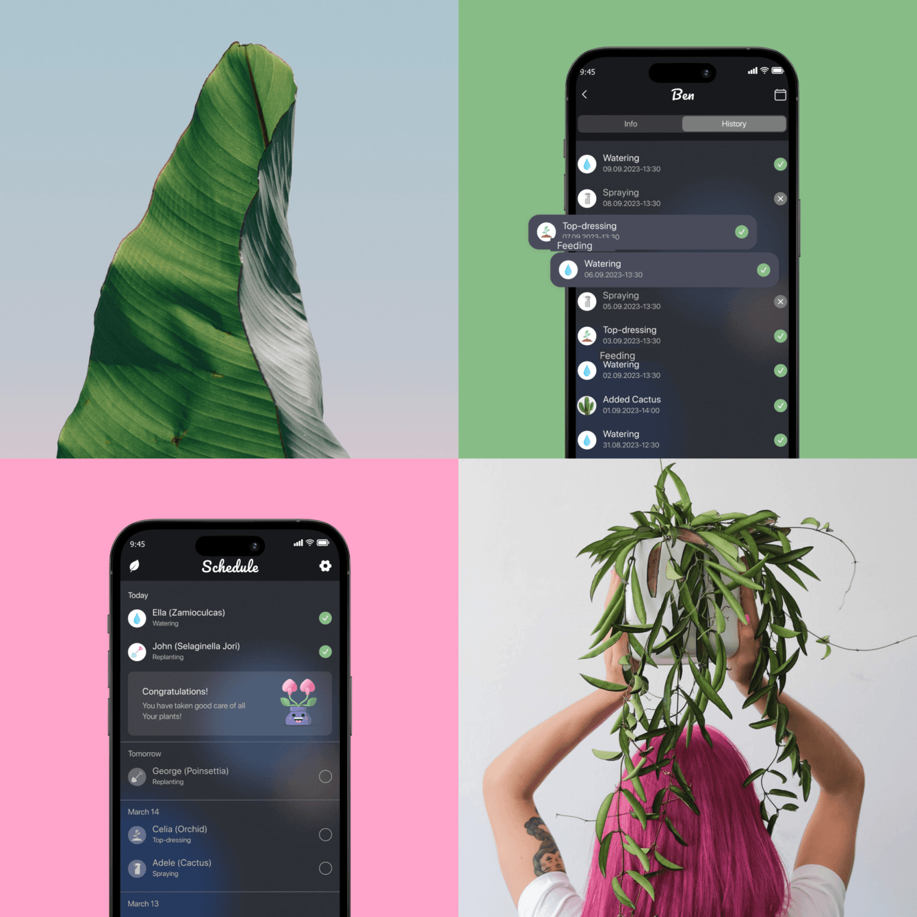 Персонализированные рекомендации и напоминания: Приложение предлагает персонализированные рекомендации и напоминания о уходе за растениями, основанные на типе растения, его текущем состоянии и окружающих условиях. Это помогает пользователям следить за здоровьем своих растений и предотвращать проблемы.