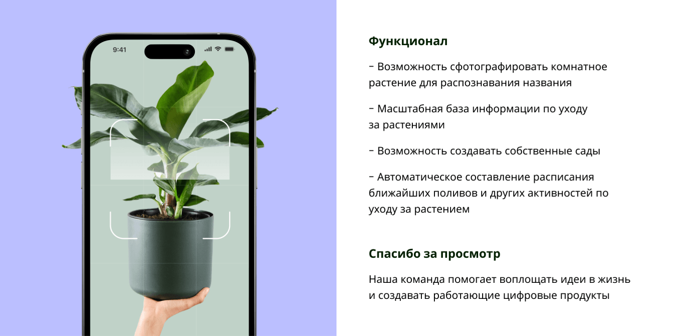 К нам обратился клиент с задачей - разработать мобильное приложение, которое поможет любителям растений ухаживать за ними с легкостью и эффективностью. Заказчик выразил желание создать приложение, которое станет надёжным помощником как для опытных садоводов, так и для тех, кто только начинает свой путь в мире растений.