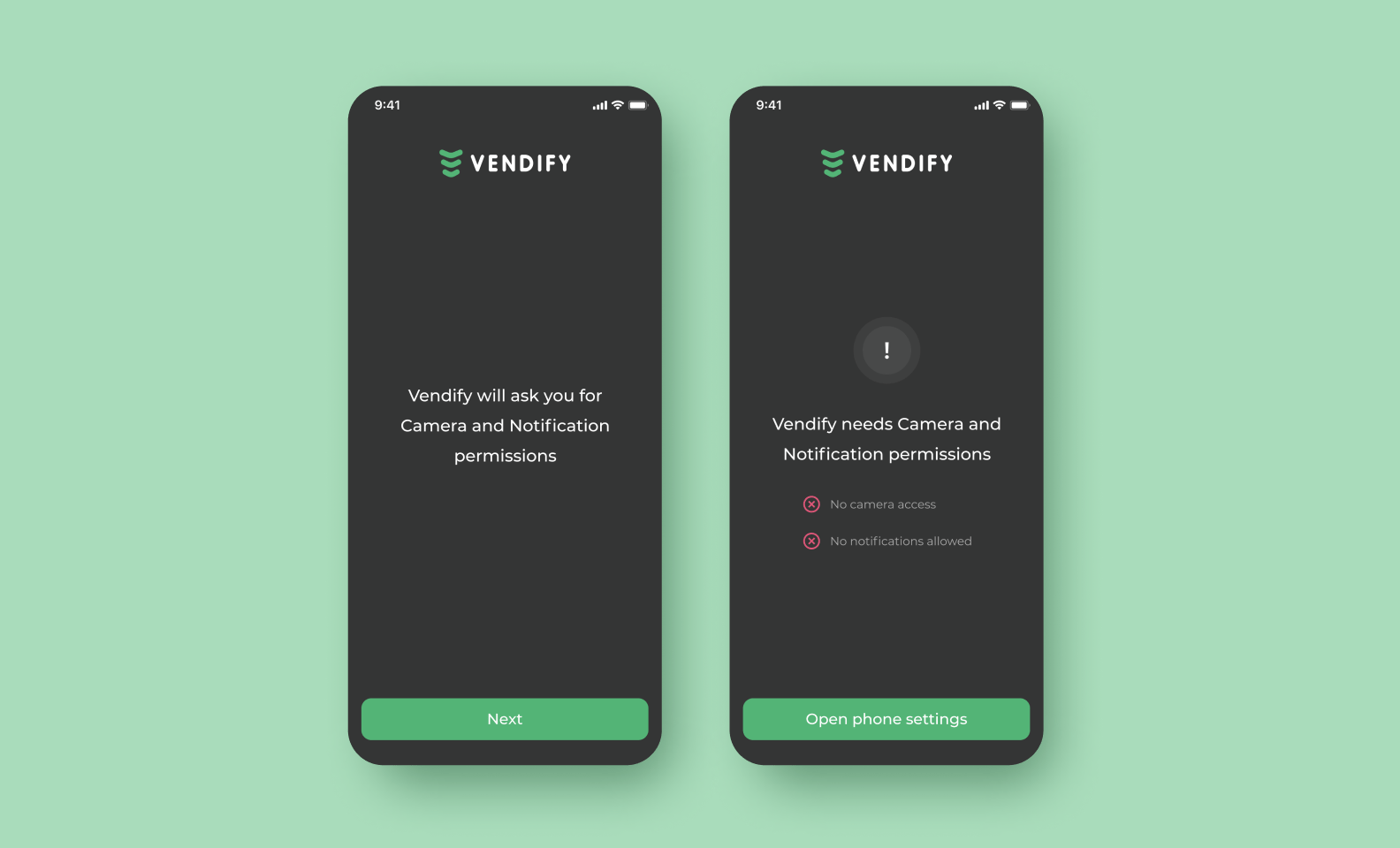 - смартфон открывает страничку Vendify в магазине приложений или сразу приложение (если оно уже скачано)