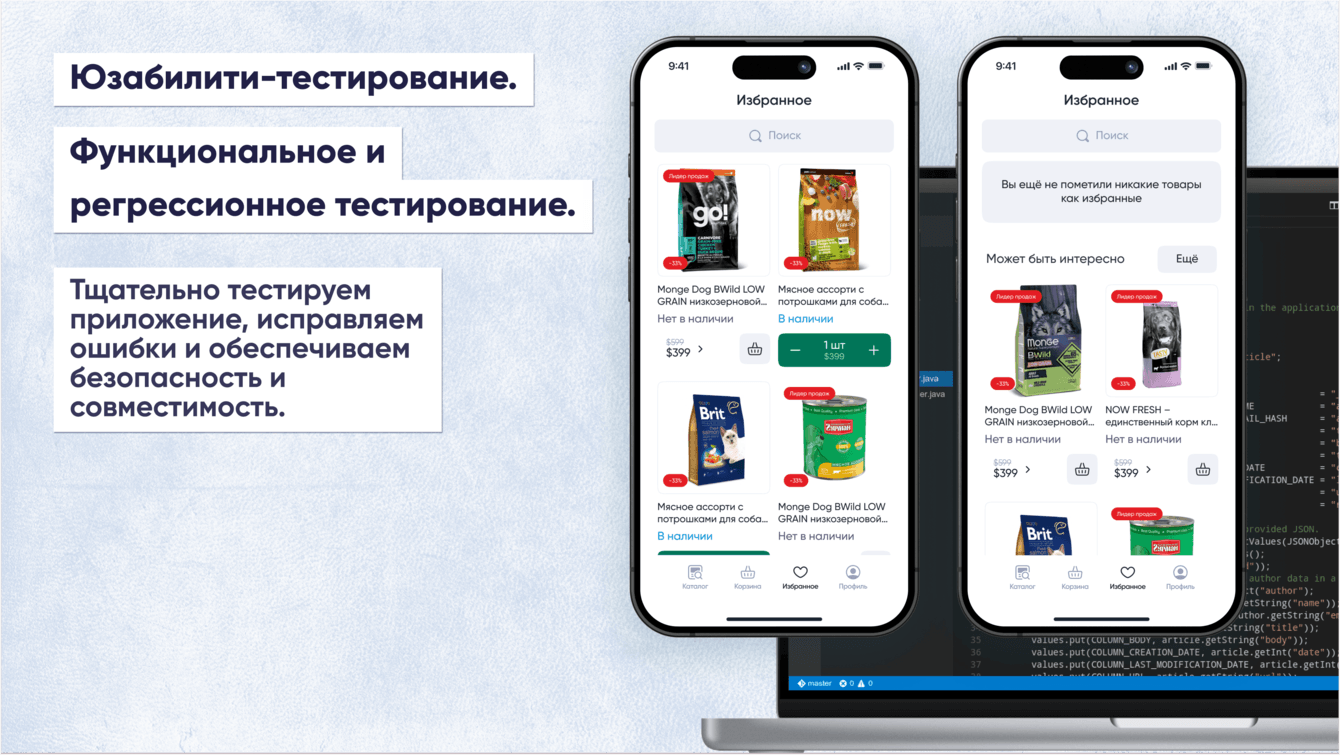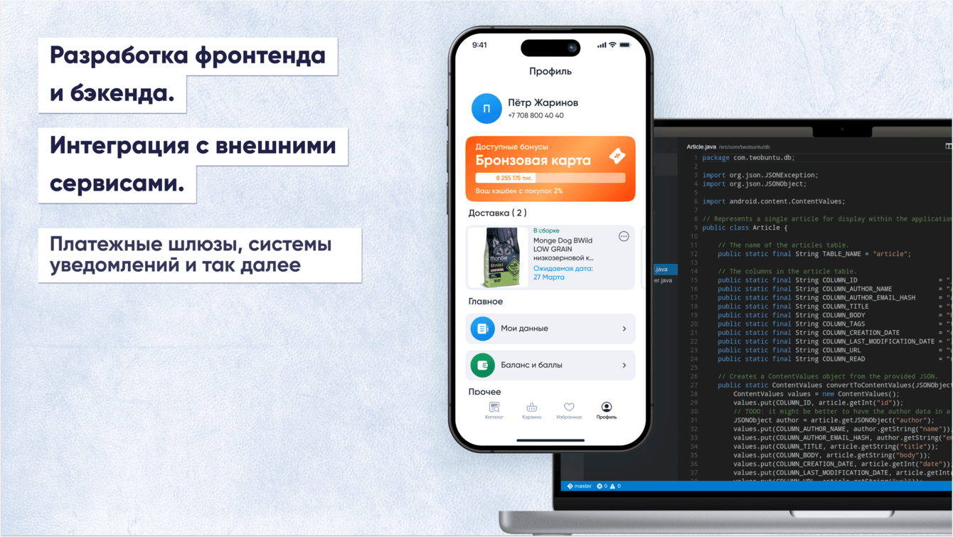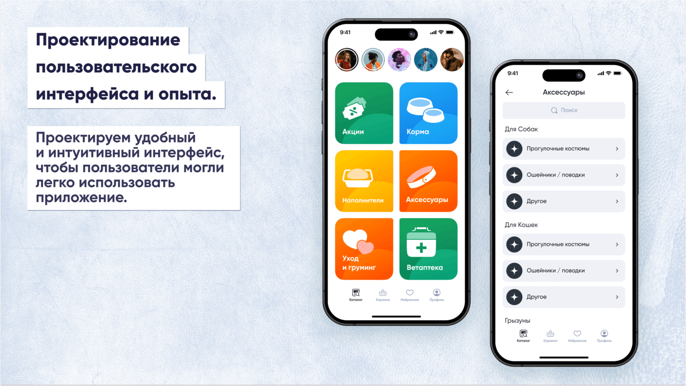 - **Фронтенд**: Разработать пользовательский интерфейс (UI) и обеспечить удобство использования (UX). Это может включать разработку экранов для каталога товаров, корзины, оформления заказа, профиля пользователя и т.д.