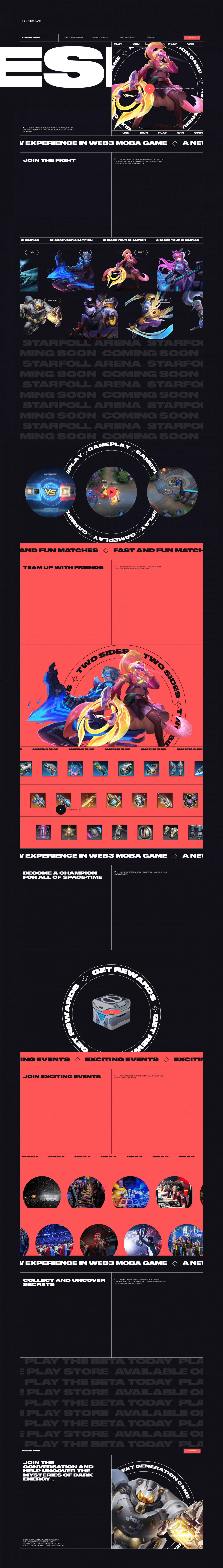 — Создали дизайн для Landing Page с захватывающей анимацией и видео-фрагментами игры для передачи атмосферы Starfall Arena и вовлечения пользователей