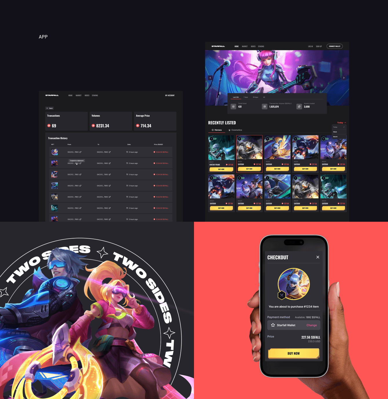 — Создан дизайн приложения Starfall Arena, которым успешно пользуются десятки тысяч пользователей. Они легко могут создавать аккаунт, приобретать героев и предметы