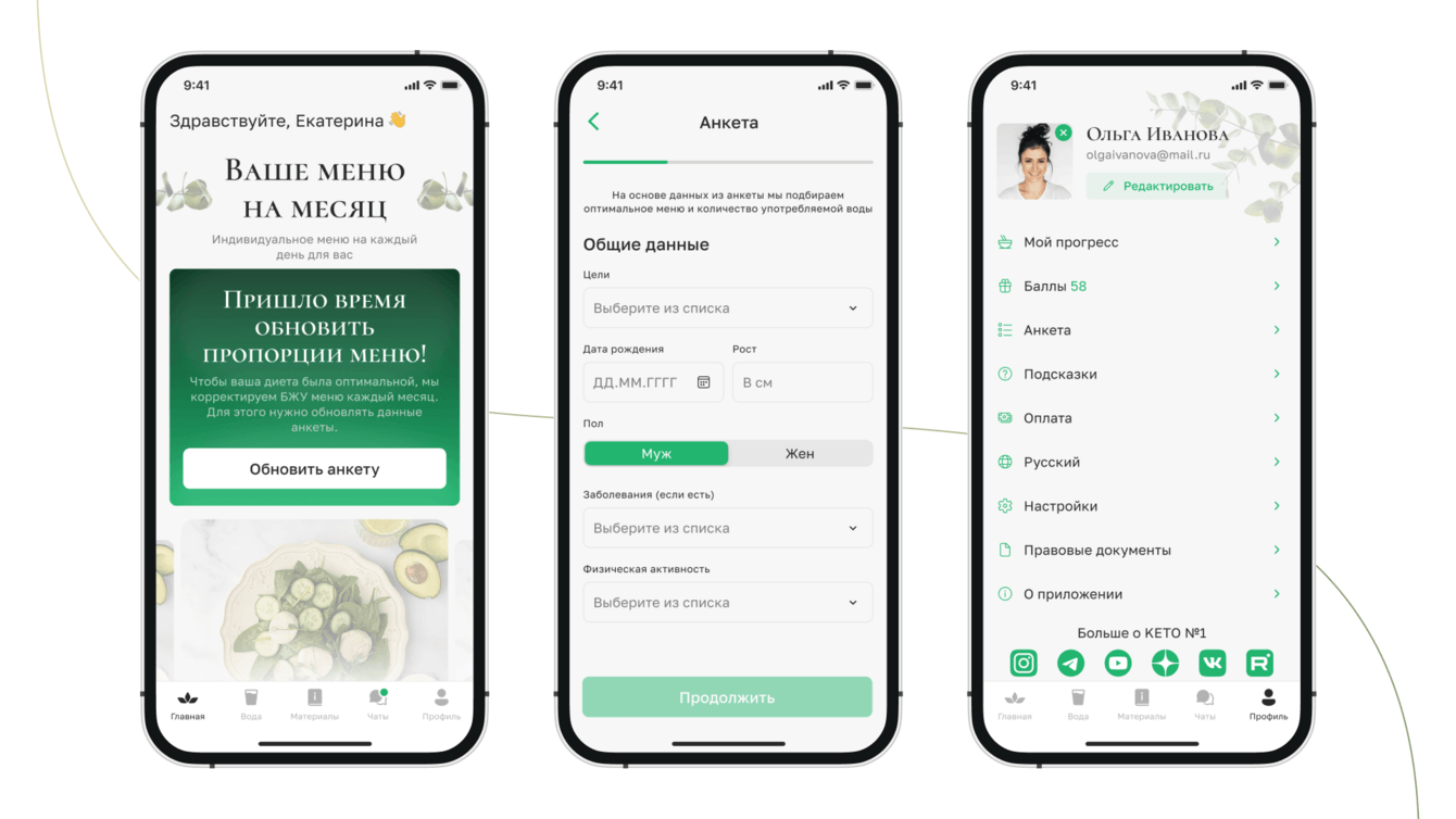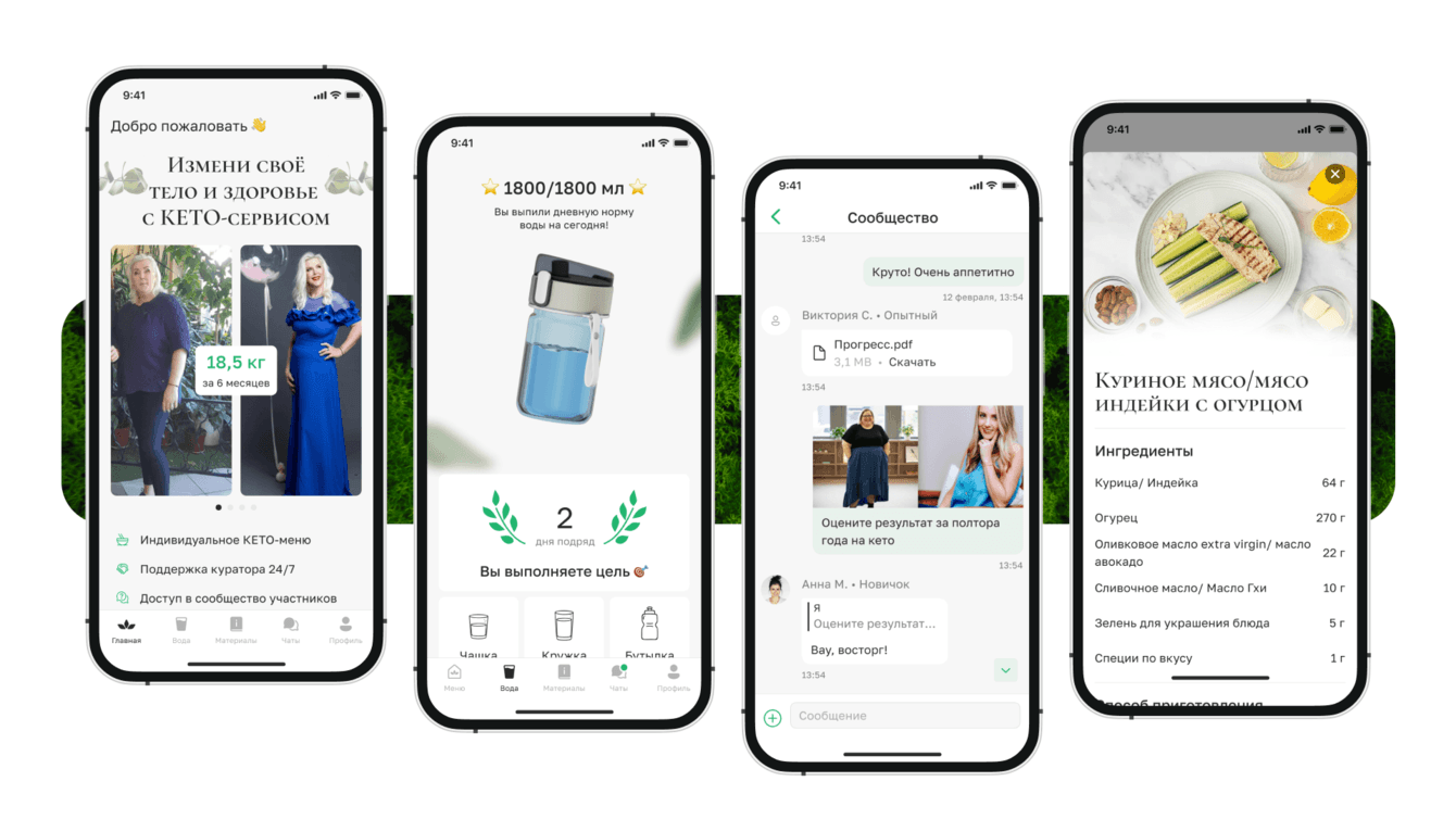 Ирина Никашина, дипломированный диетолог и кето-коуч, автор уникального курса правильного питания КЕТО№1, обратилась к нам с запросом разработки мобильного приложения. У клиента уже был действующий сайт курса по кето-питанию и LCHF (высокожировой низкоуглеводный рацион) c блоком anti-age программы. В этом году сервис трансформировался, появились новые функции, участников стало намного больше. Новое приложение должно было расширить канал коммуникации с целевой аудиторией, сделать курс еще более доступным и комфортным для прохождения и повысить вовлеченность пользователей за счет фишек и персональных сервисов.