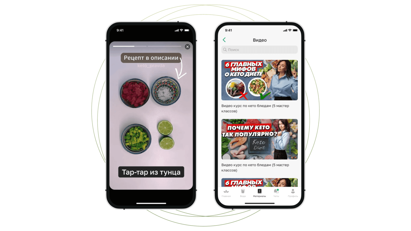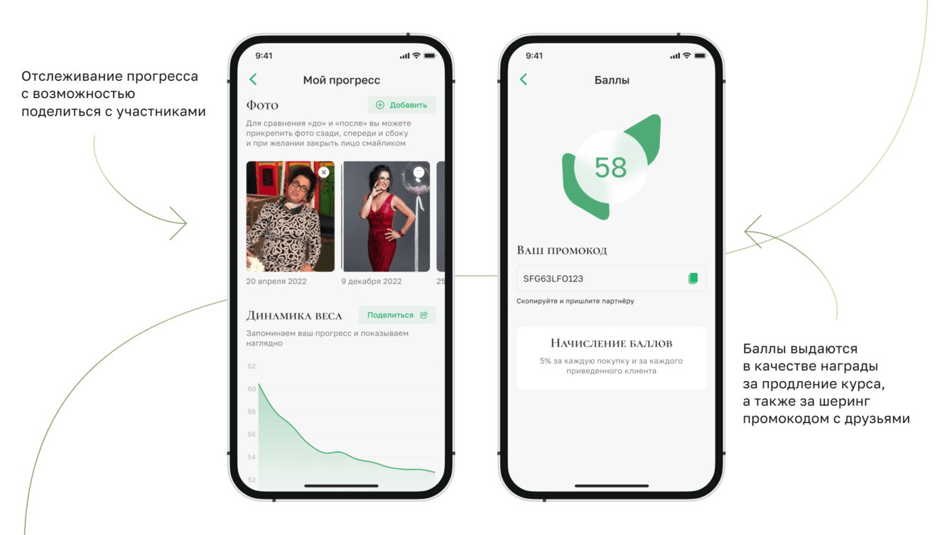 Ирине нужно было такое приложение, которое решит, пожалуй, главную проблему всех проектов ЗОЖ – поможет участникам следовать курсу и достигать результатов. Эту задачу мы решили выполнить с помощью: