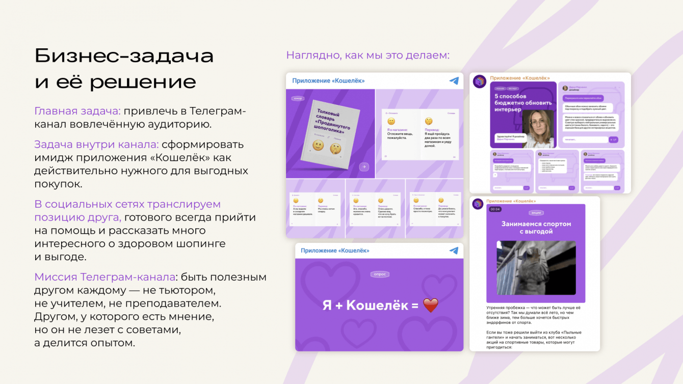 Задача внутри канала: сформировать имидж приложения «Кошелёк» как действительно нужного для выгодных покупок.