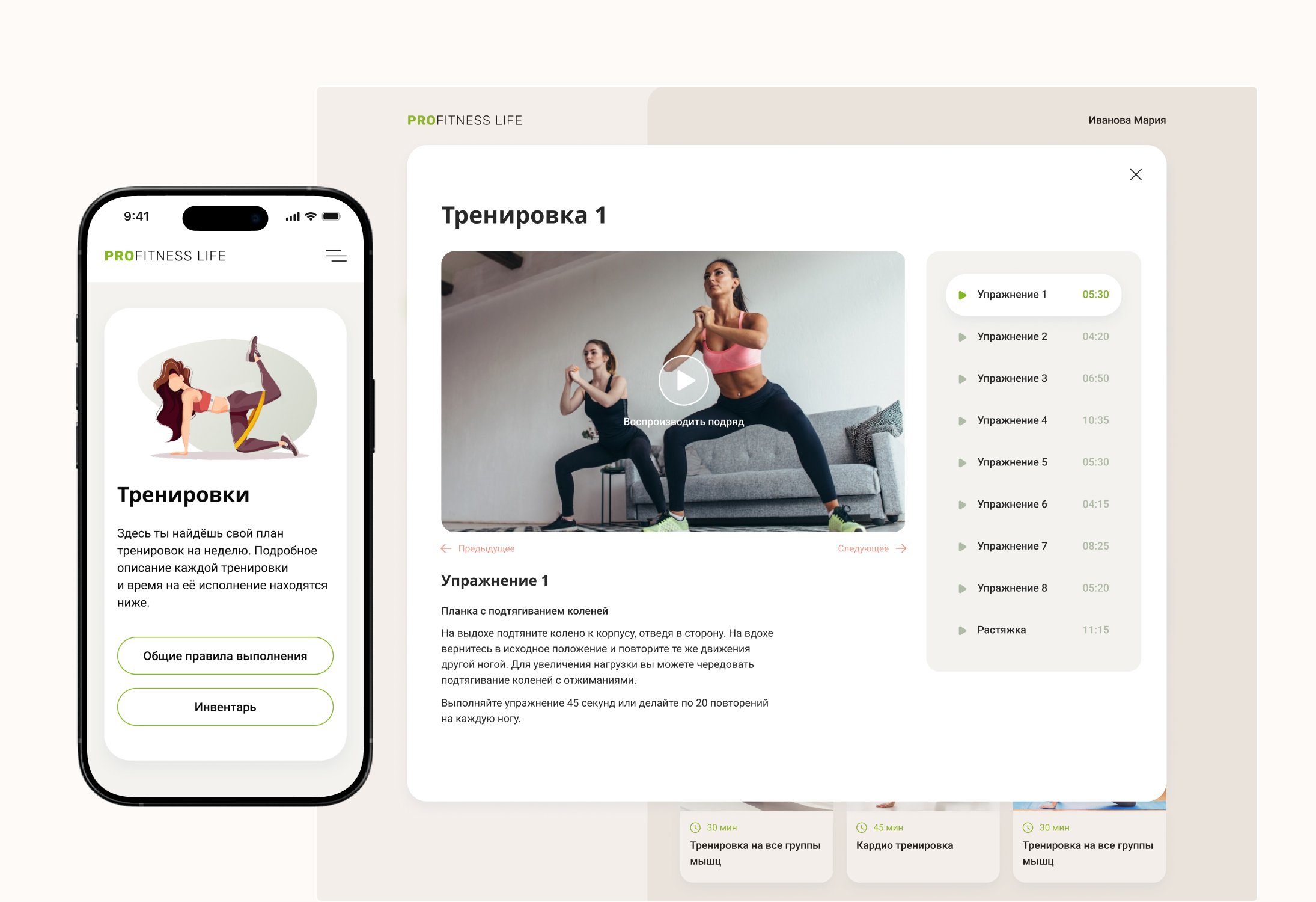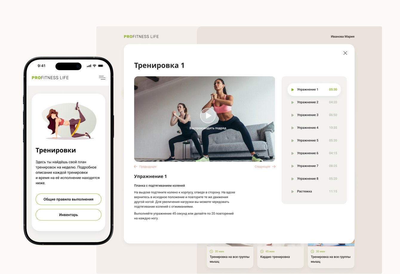 ProFitnessLife объединяет в себе сразу несколько ролей: тренера, диетолога и наставника, — и делает путь к цели понятным, поддерживающим и визуально мотивирующим, помогая встроить здоровый образ жизни в повседневный ритм и превратить его в привычку.