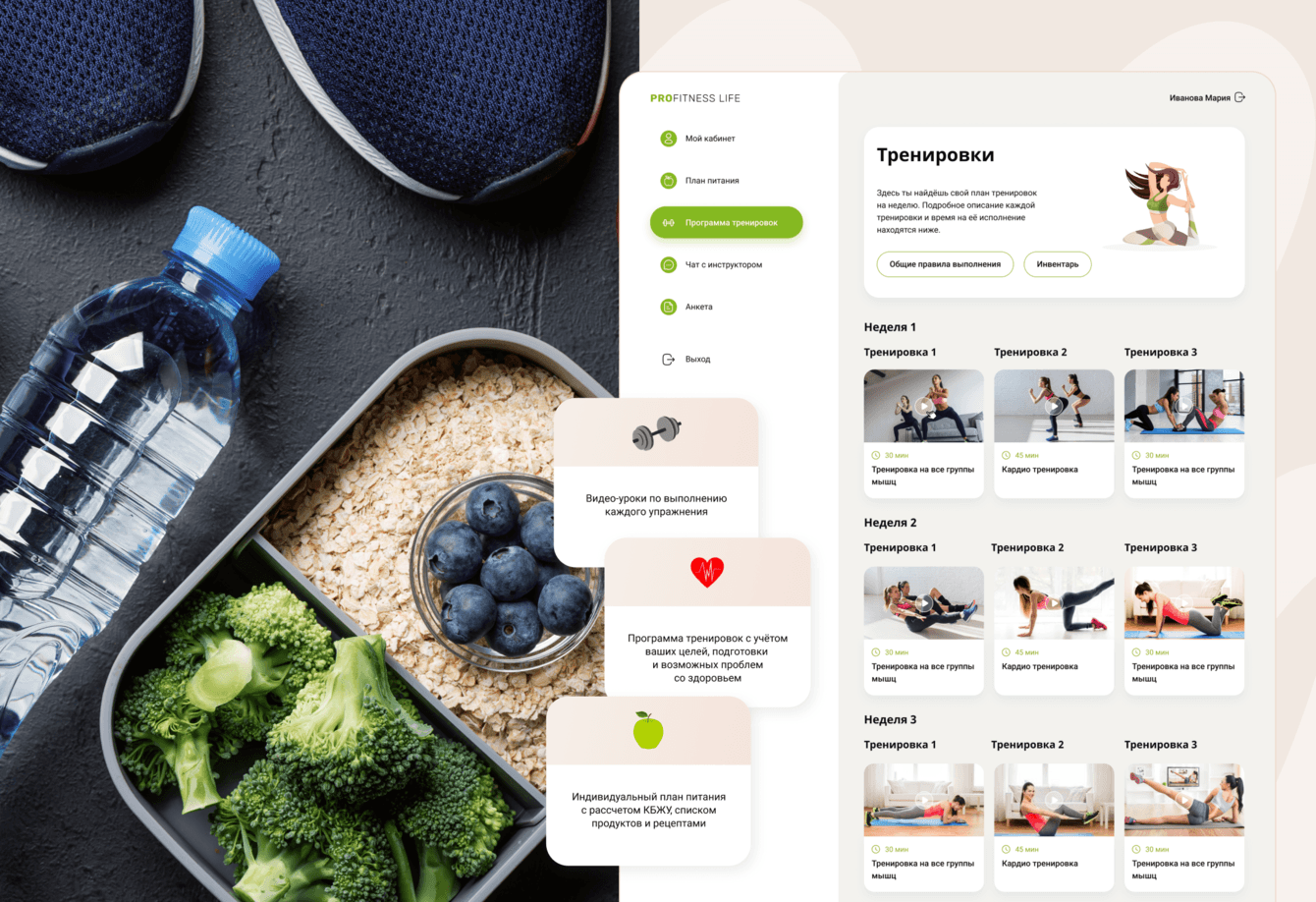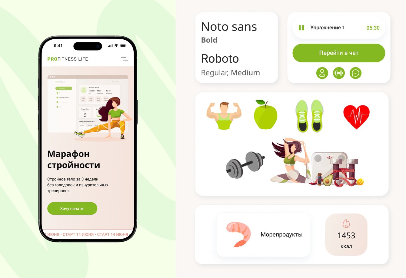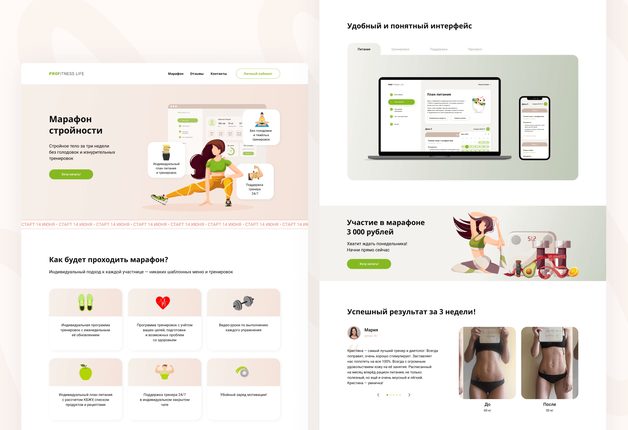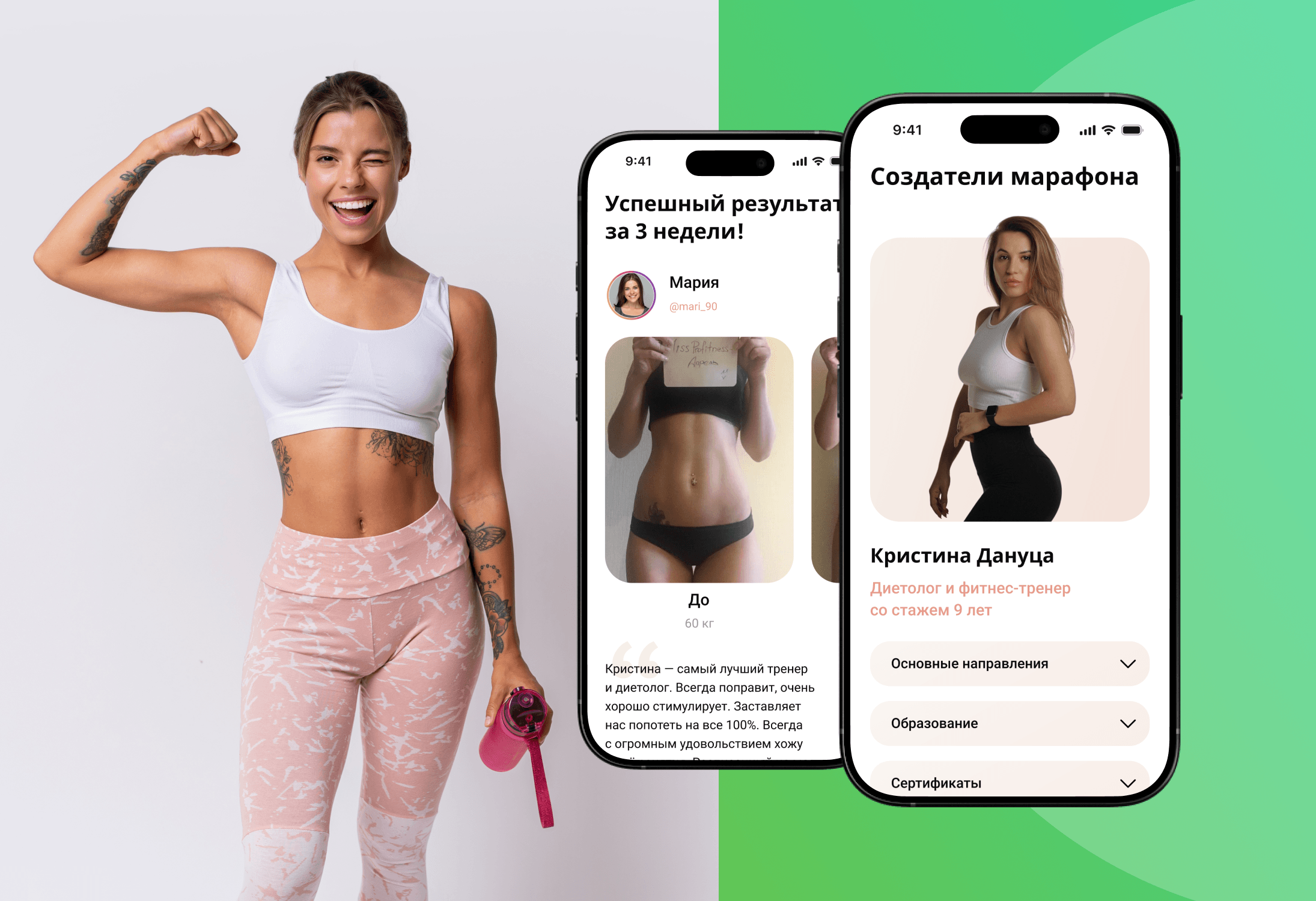 Заказчики — опытные специалисты в области питания и фитнеса, решившие упаковать авторский марафон в понятный и визуально сильный продукт.