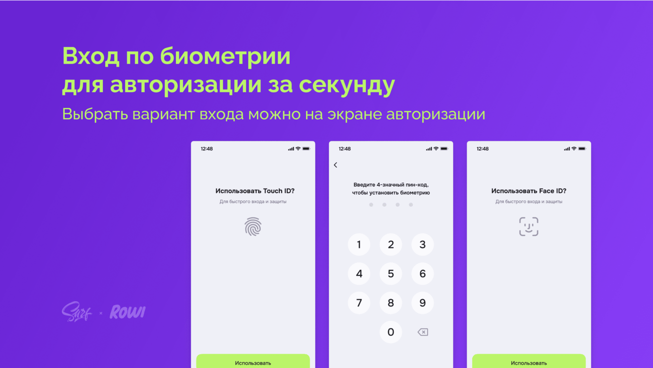 2. Проработали решение для входа по биометрии, чтобы пользователи могли авторизоваться по FaceID или TouchID за секунду. Для этого выстроили схему процесса интеграций с девайсами, которые поддерживают возможность входа по биометрии. Приложение само идентифицирует такую возможность и предлагает входить по биометрии после регистрации в приложении.