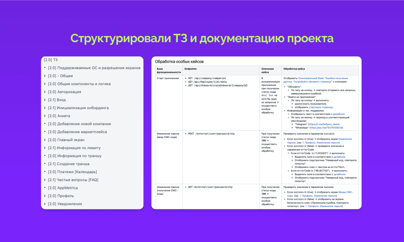— Пересобрали основные блоки технического задания, чтобы компания смогла быстро найти нужную информацию и не тратить время на поиск документов.