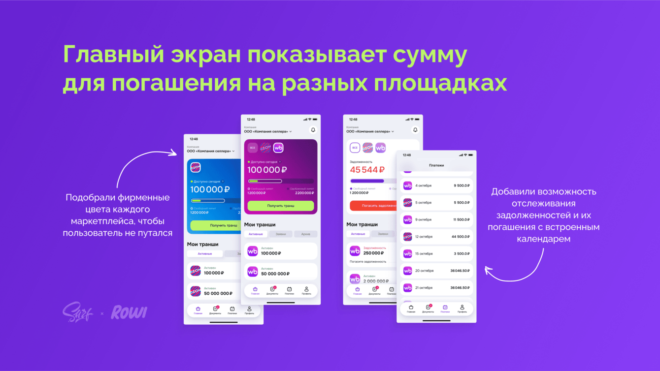 Наша компания финансирует продавцов на маркетплейсах. Surf с нуля разработали для нас мобильное приложение, ранее для клиентов был только личный кабинет в вебе. Это большой шаг в доступности и проницаемости к нашей аудитории, ведь многие селлеры ведут дела через телефон. Сейчас около 20% наших новых клиентов приходят к нам через мобильное приложение. Sellplus — первое приложение факторинга для селлеров на рынке России. Коллеги смогли создать нескучное приложение со свежим и удобным дизайном.