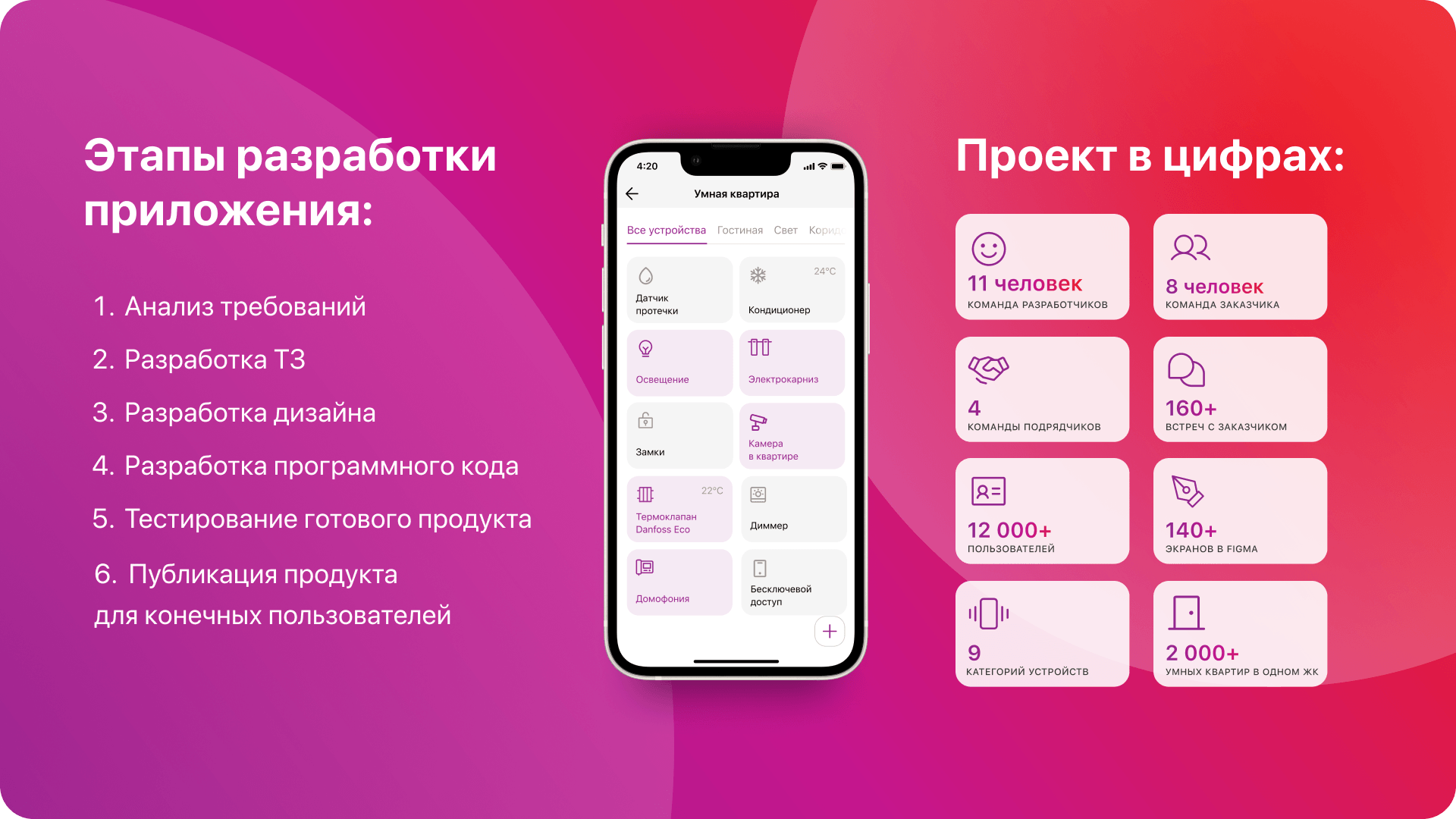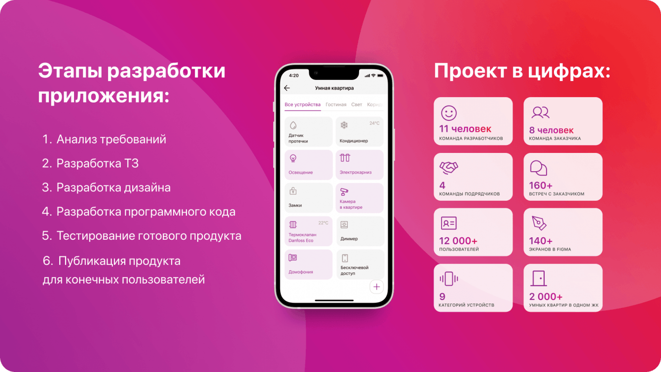 Основная задача проекта - разработать экосистему для жителей, в которой они могут выполнять как процессы связанные с любыми вопросами и обратной связью по объекту недвижимости, управлять инженерным оборудованием установленным в общественных местах жилых комплексов, так и IoT устройствами в собственной квартире из приложения на смартфоне.