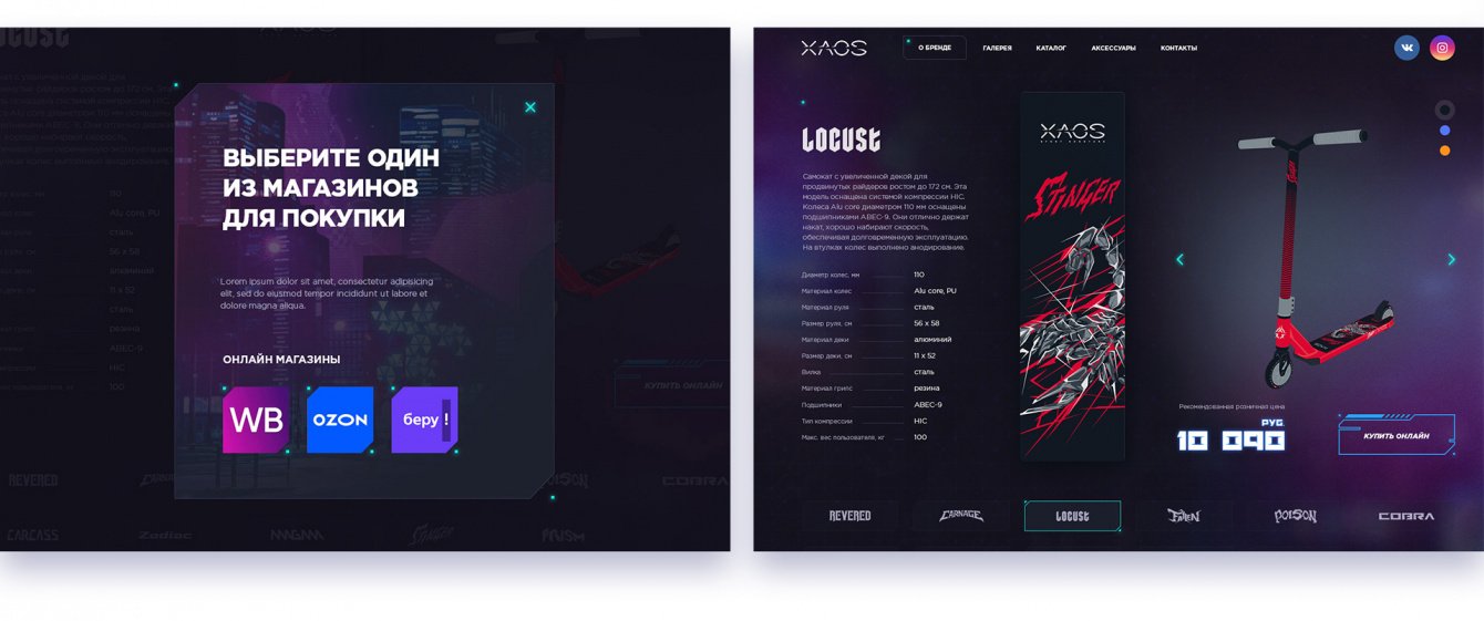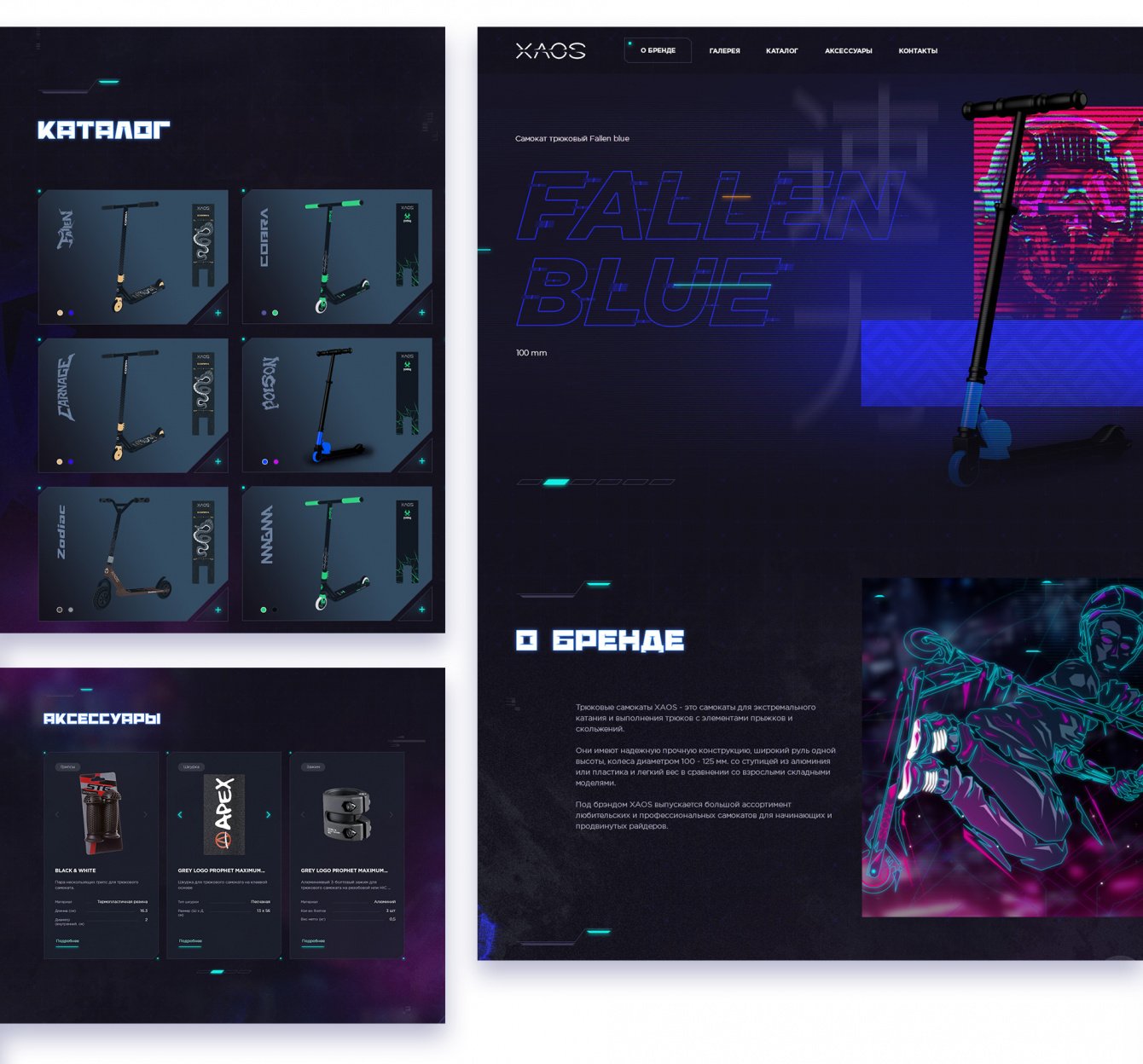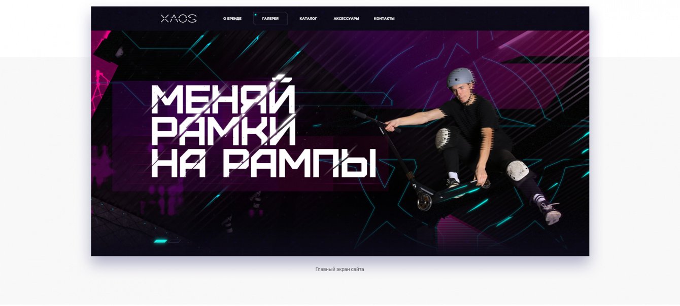2) яркий лендинг для нового бренда трюковых самокатов XAOS.