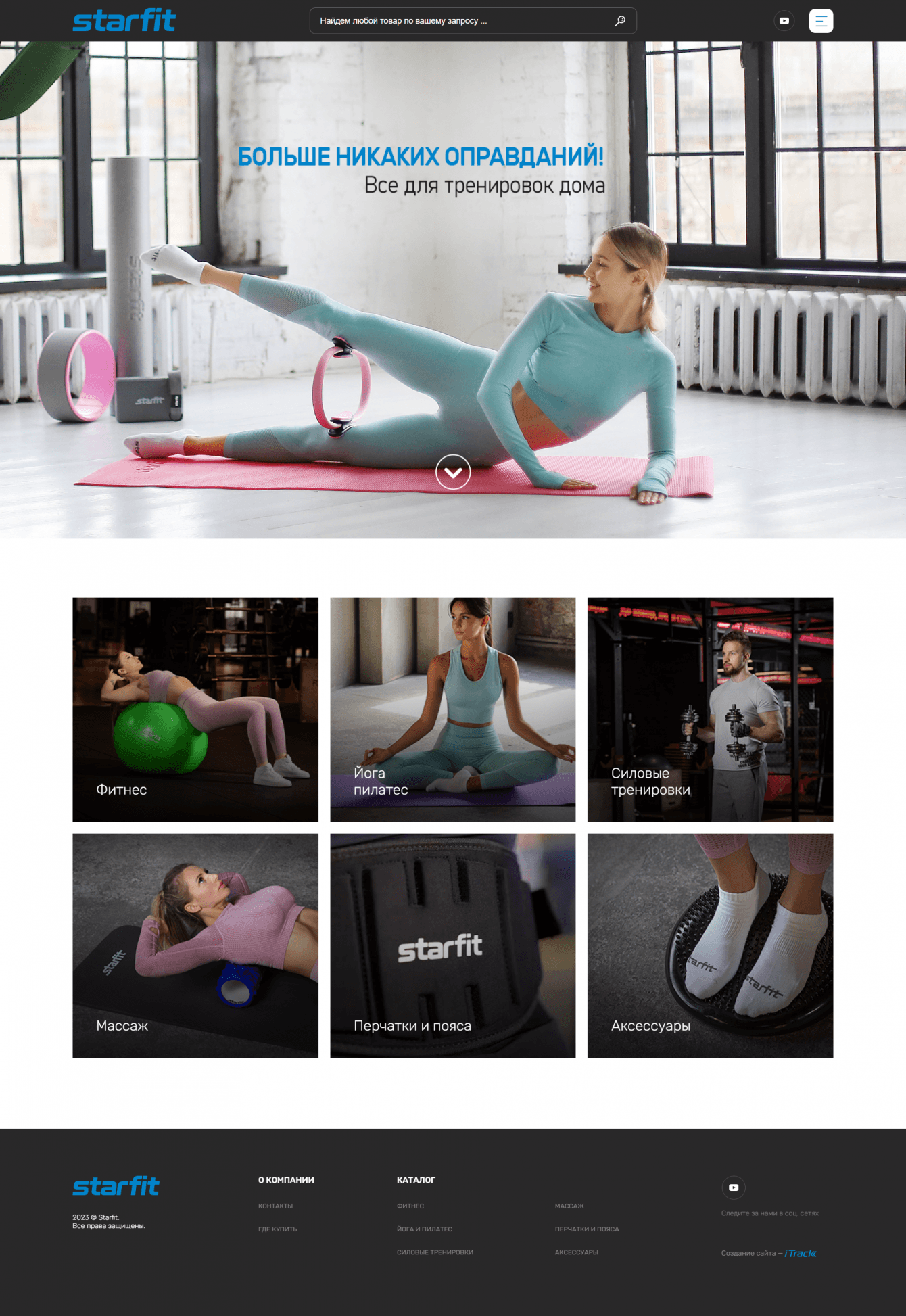3) сайт-каталог для бренда фитнес-инвентаря, фитнес-аксессуаров и тренажеров Starfit