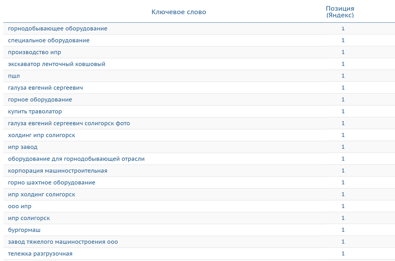 Сайт вышел в ТОП-3 по ключевым промышленным запросам, включая высококонкурентные "горно-шахтное оборудование купить" и "буровые установки для шахт". Количество целевых заявок от промышленных предприятий увеличилось с 3-5 до 12-15 в месяц, при этом 40% запросов поступило из новых регионов.