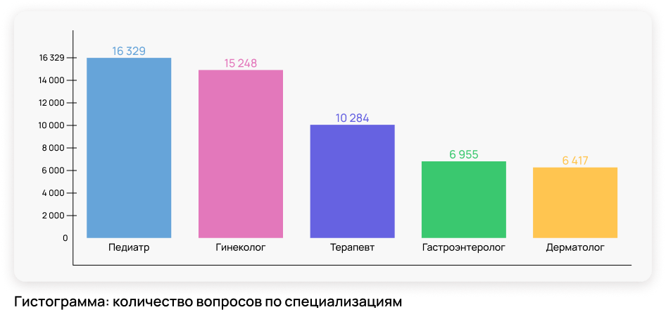 Запрашивали следующие данные: пол, возраст, город, устройство, операционную систему, а также данные по востребованным специализациям врачей.