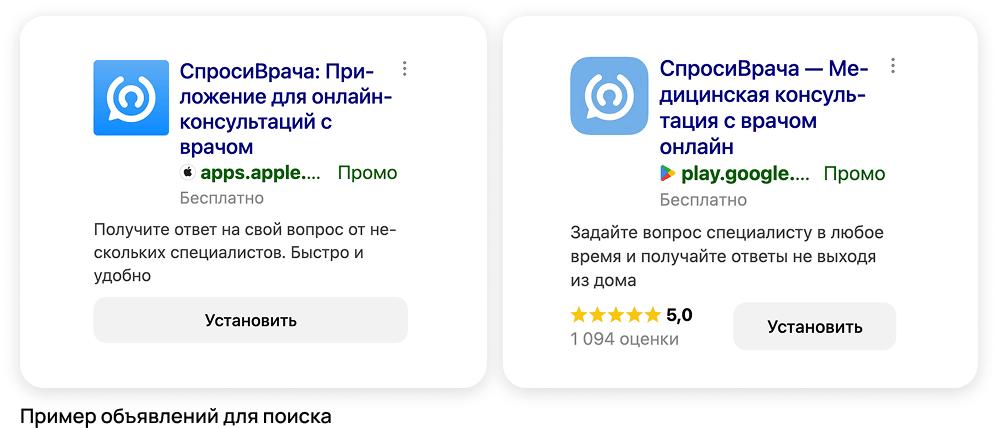 Поскольку цена за вопрос была низкой и привлекательной, мы указывали её. С CTA не экспериментировали и везде призывали устанавливать приложение.