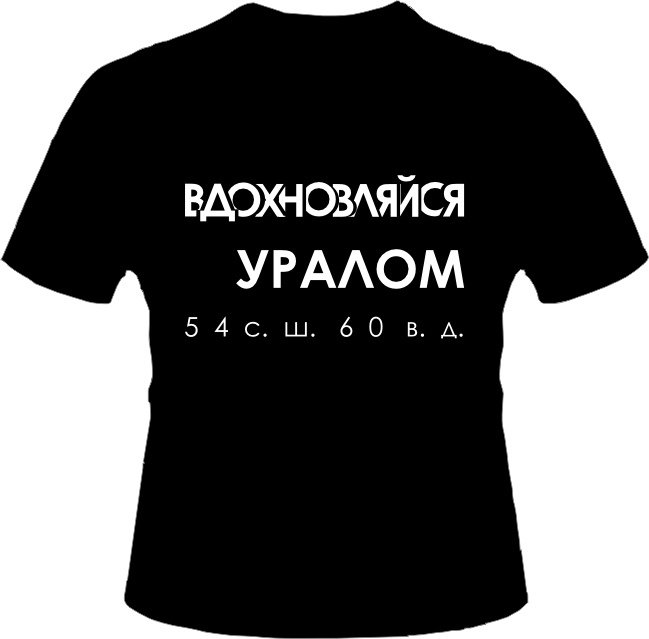 Разработать принт футболки для проекта "Активный отдых на Южном Урале"