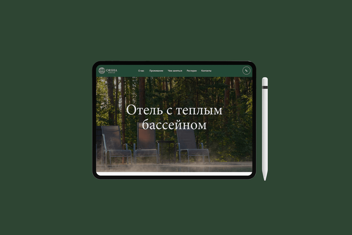 Orsha River Club — загородный отель с собственной территорией, рестораном, уютной атмосферой и сервисом, ориентированным на гостей, ценящих спокойный отдых за городом. На момент обращения у клиента не было современного сайта, и основная активность велась через соцсети и агрегаторы. Однако возникла необходимость в сайте, который бы: