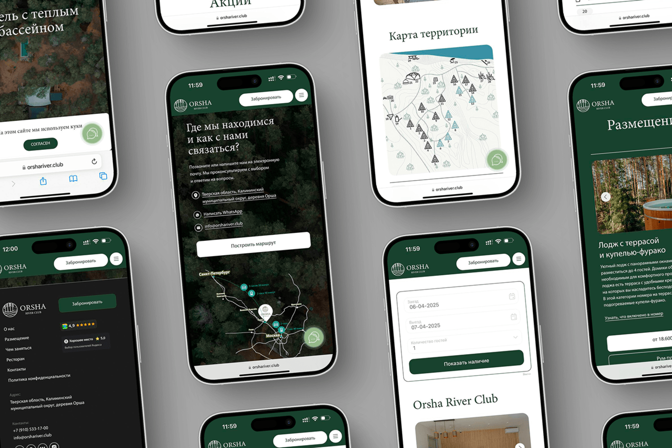 Клиент сказал: “хочется сайт, после которого люди бронируют не домик — а тишину, утренний лес и вкусный завтрак на веранде”. Мы сразу поняли: делаем не просто лендинг, а цифровую открытку с запахом сосен. Так появился сайт Orsha River Club — место, в которое хочется провалиться с первого экрана.