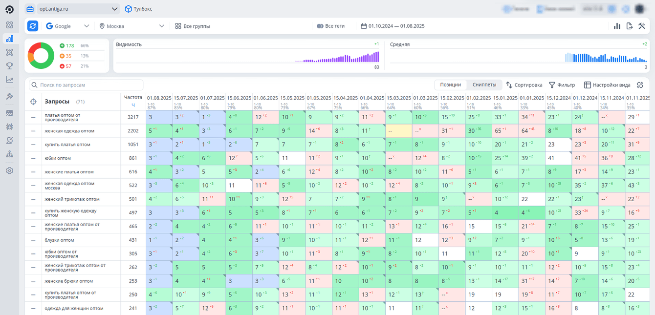 - Увеличение видимости по запросам: розница - «женские платья российского производства», опт - «опт женской одежды от производителя»